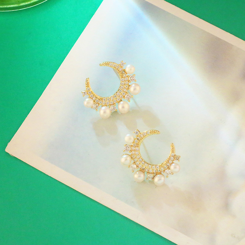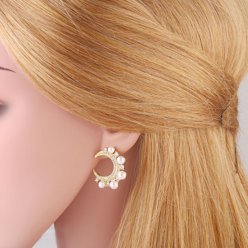 European and American personality exaggerated large earrings female net celebrity temperament pearl moon earrings 2023 new fashion accessories erx82