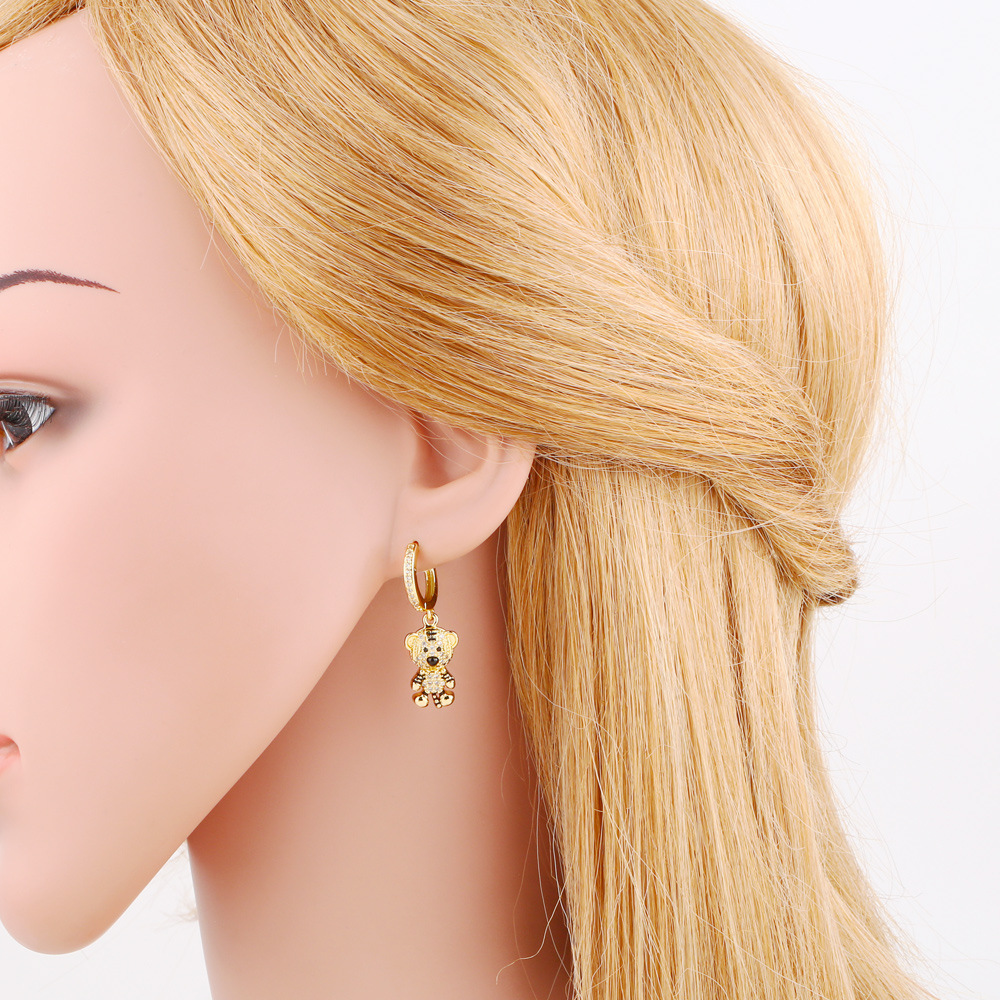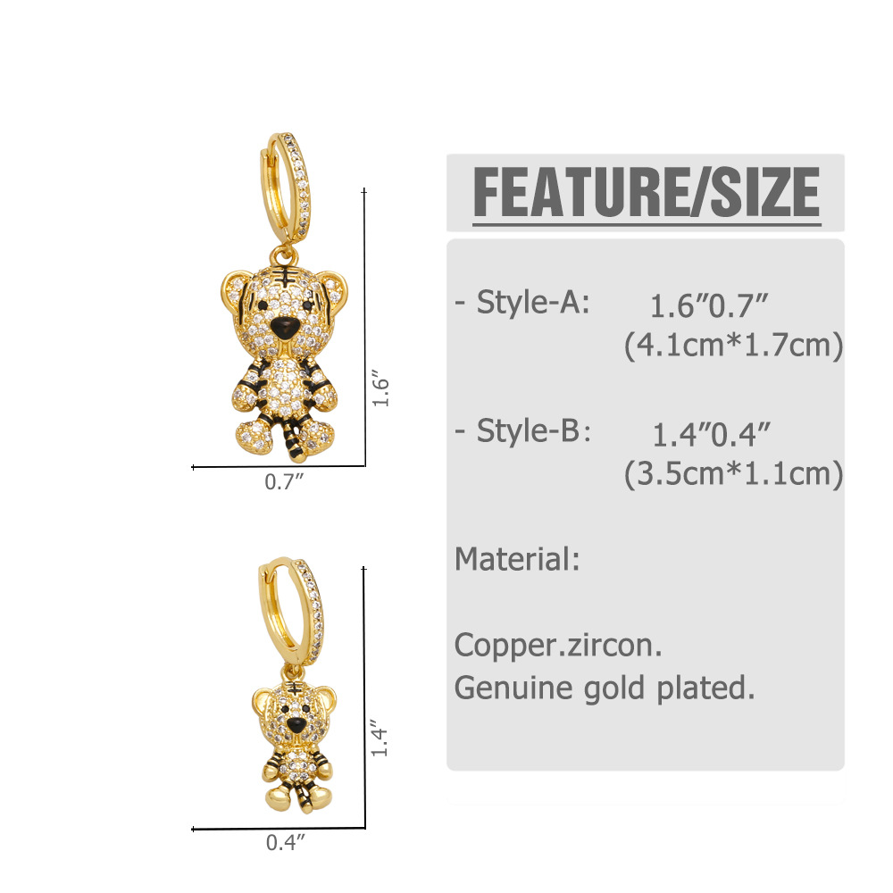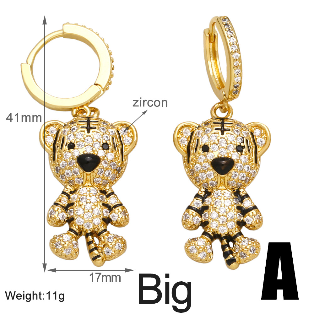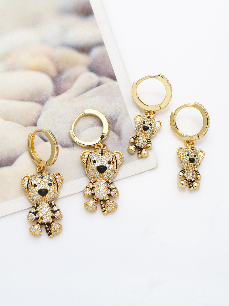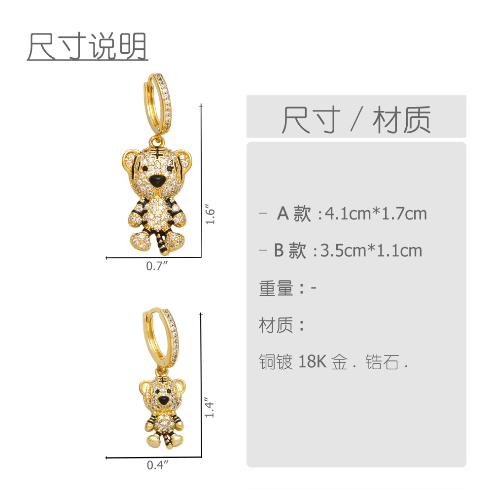 European and American personality little tiger earrings fashion animal light luxury temperament all-match inlaid zircon earrings female eru54