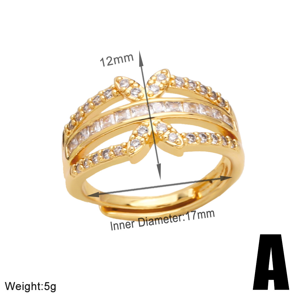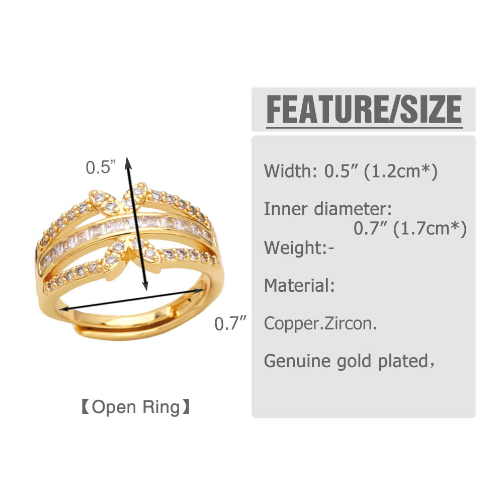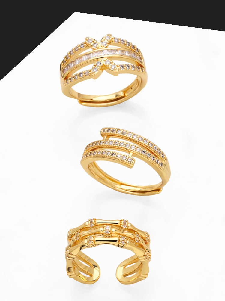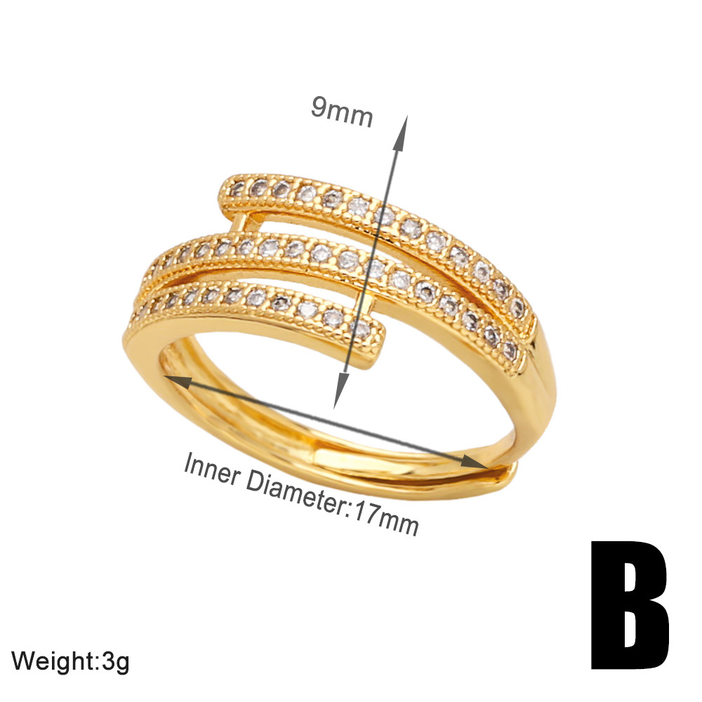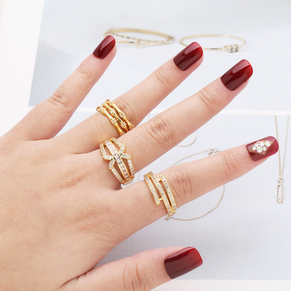 European and American personality open double-layer ring female niche design inlaid zircon gold-plated high-end ring jewelry ris35