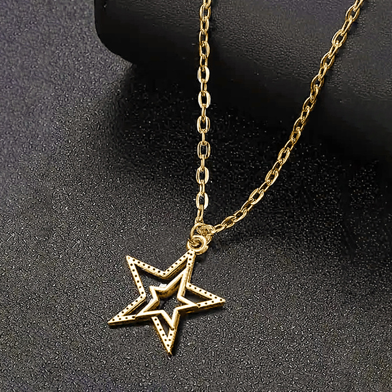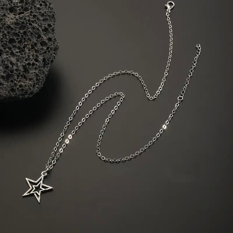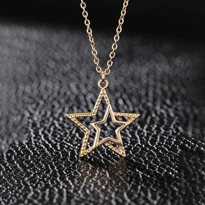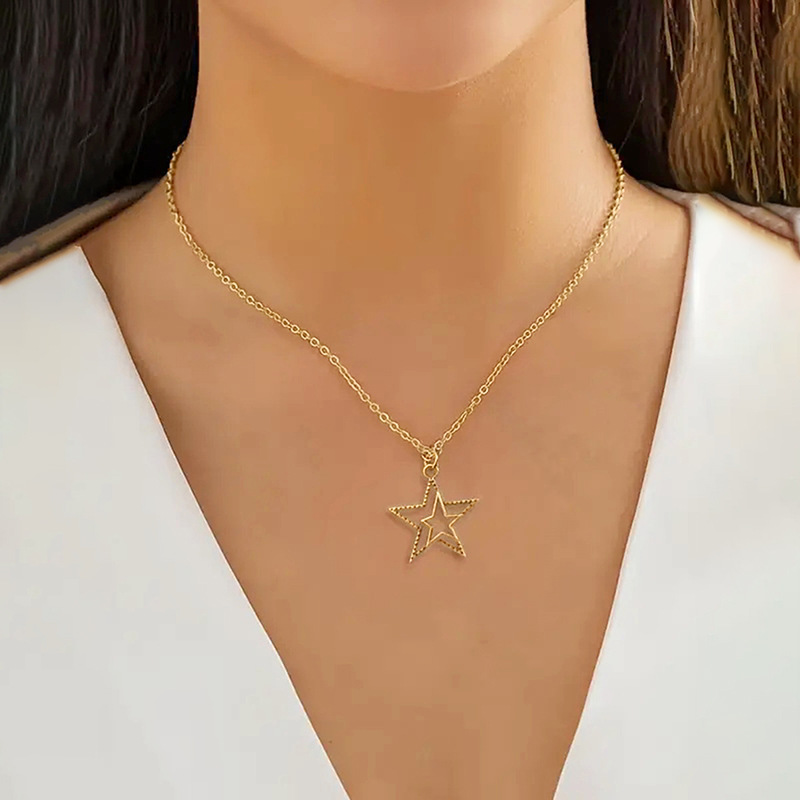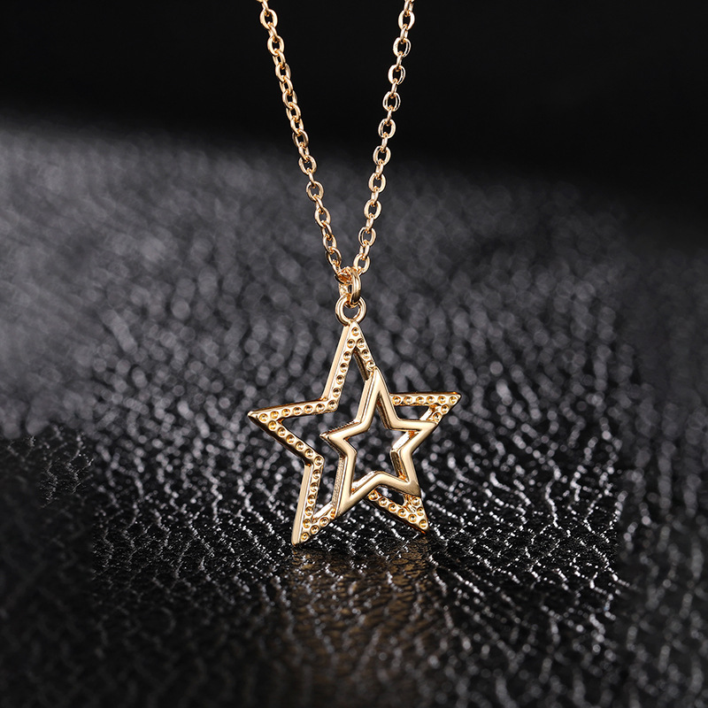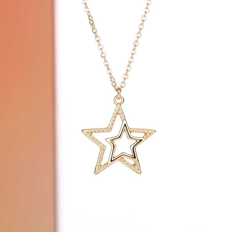 European and American personality retro five-pointed star jewelry hollow star simple sweater chain small fresh three-dimensional necklace