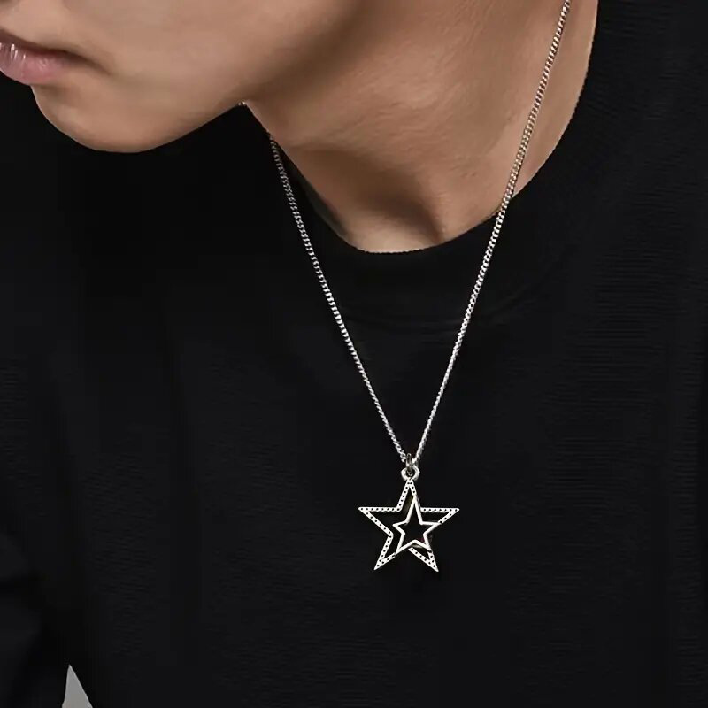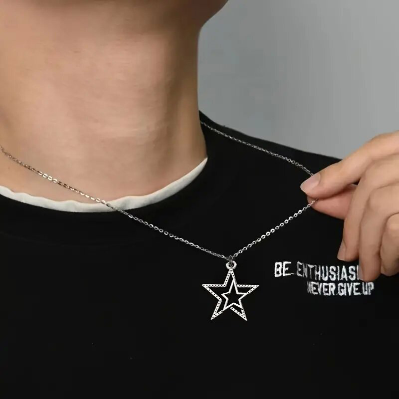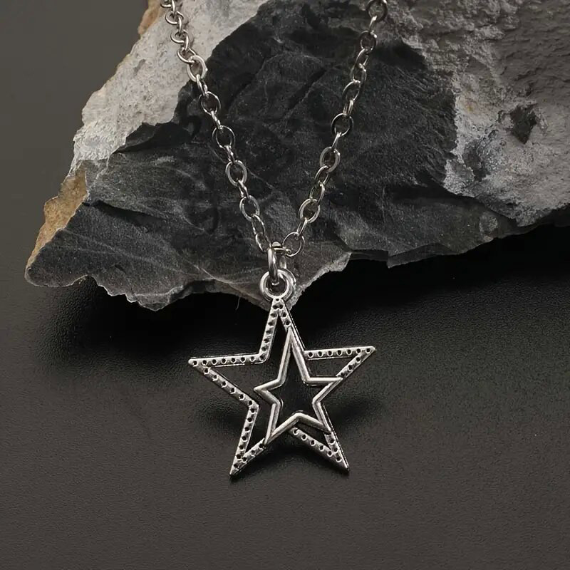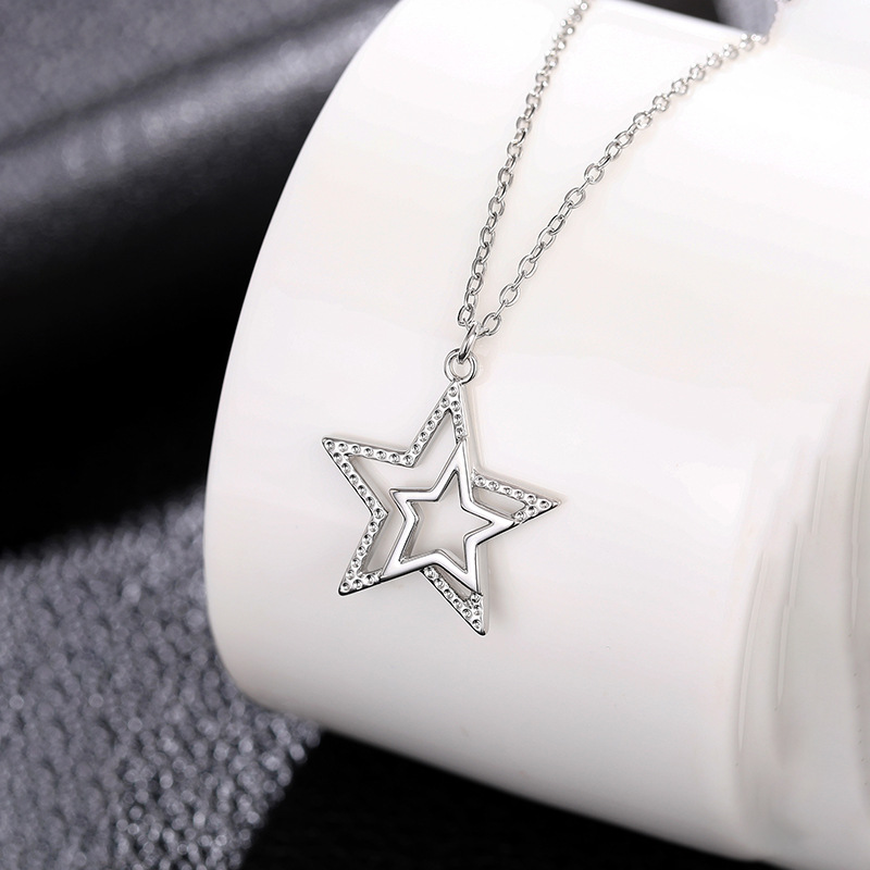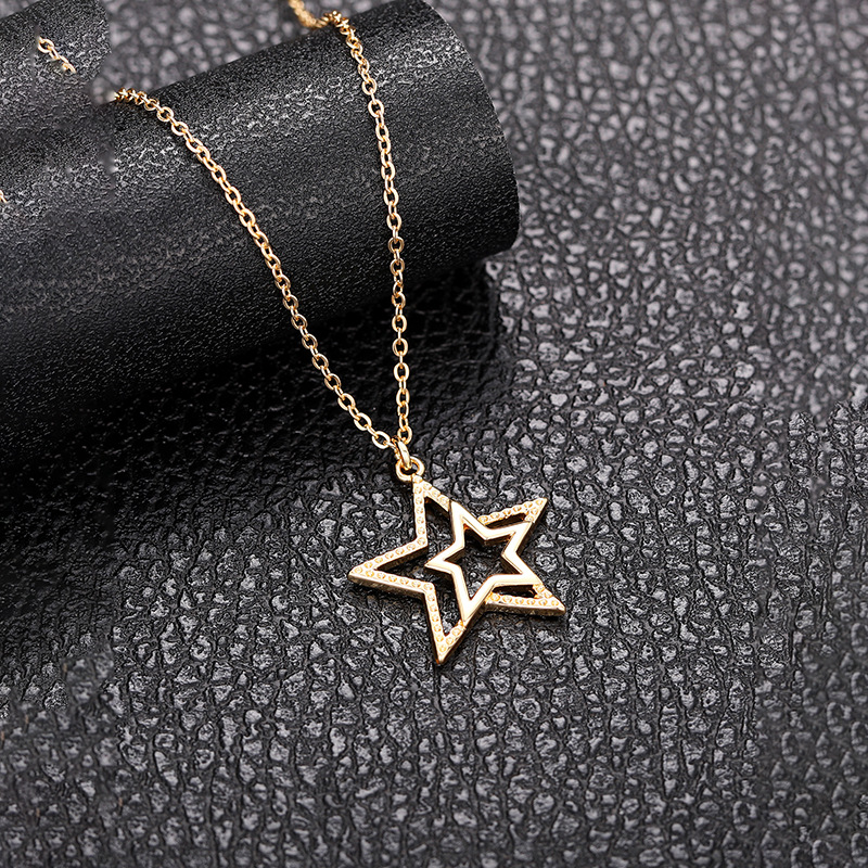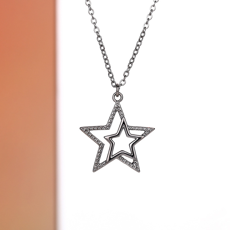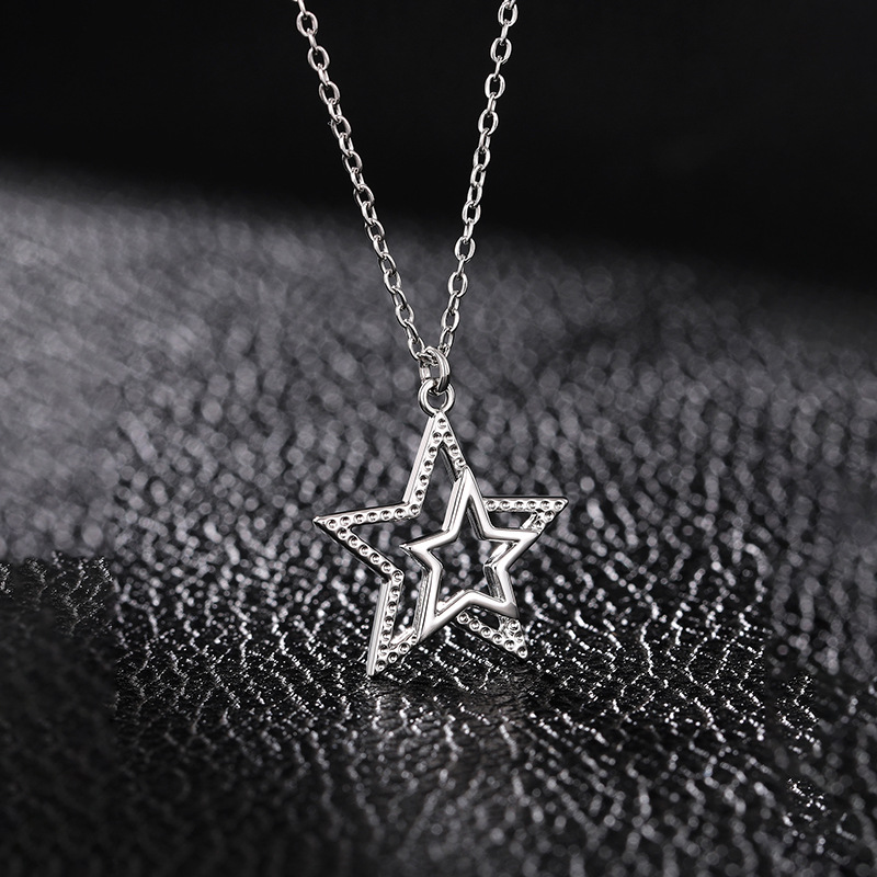 European and American personality retro five-pointed star jewelry hollow star simple sweater chain small fresh three-dimensional necklace