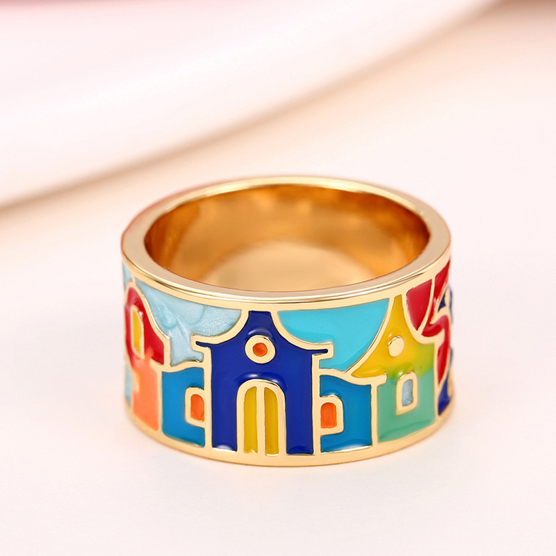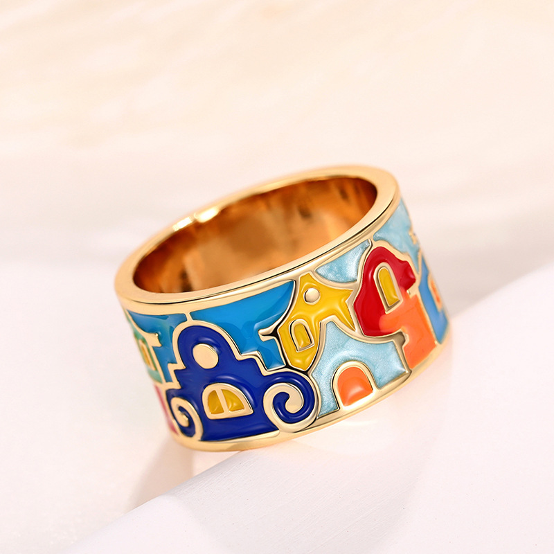 European and American personality ring new color enamel drip oil splicing ring fashionable personality ladies ring