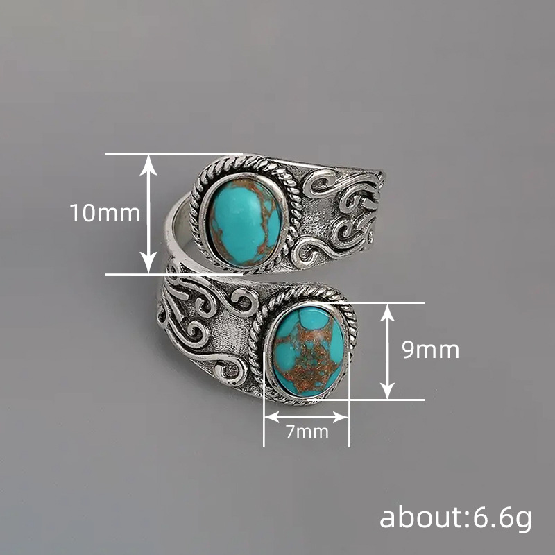 European and American popular Bohemian style ring for women with adjustable opening, retro jewelry, imitation turquoise jewelry