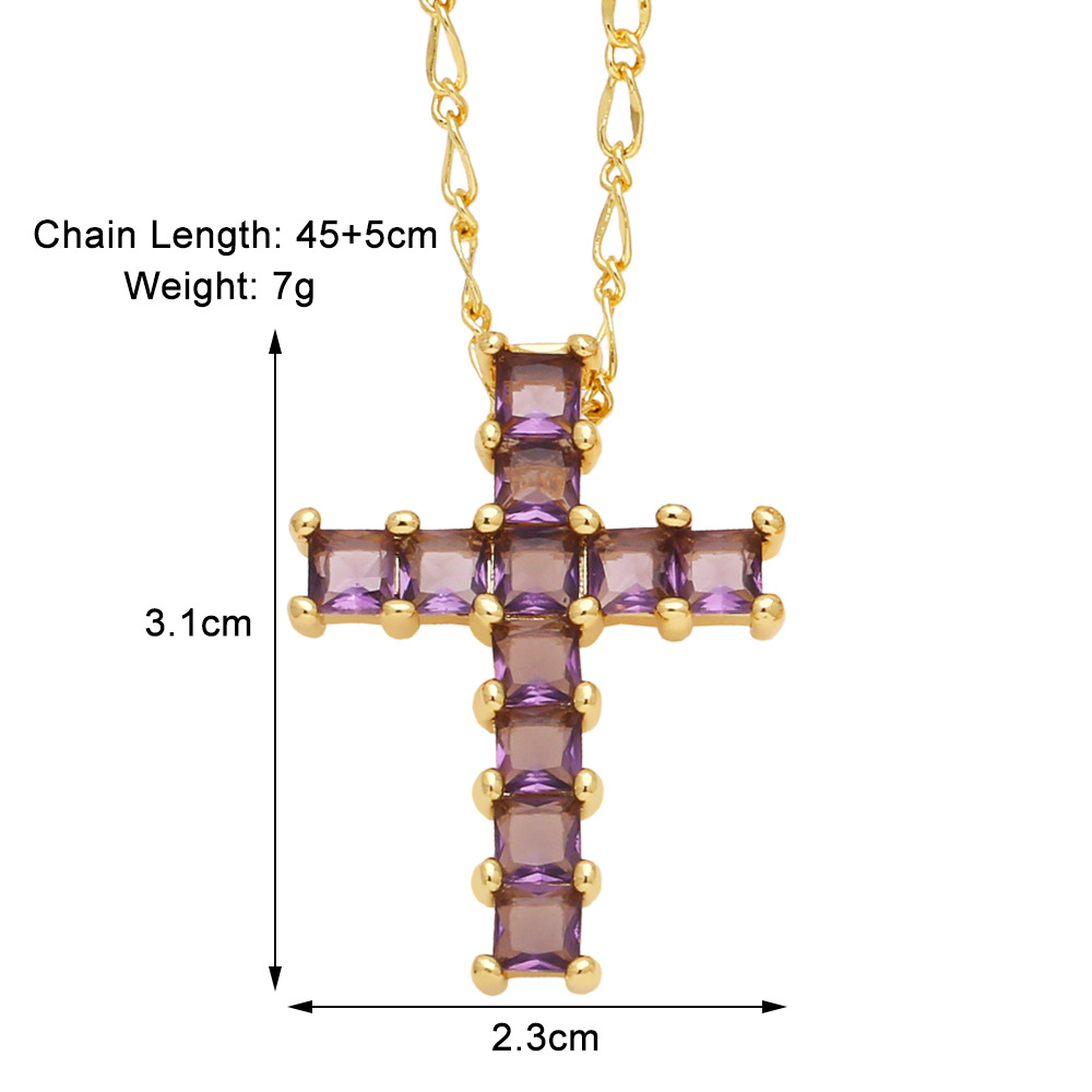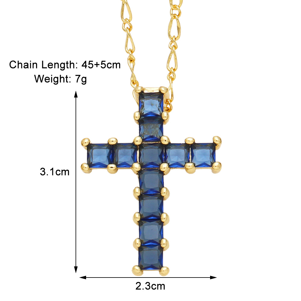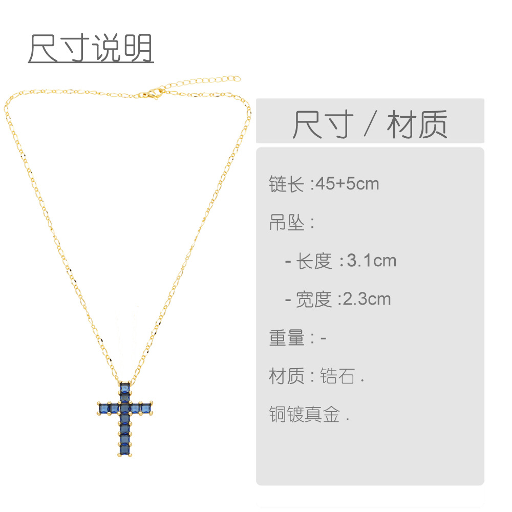 European and American popular cross necklace niche all-match hip-hop color zircon clavicle chain nkb373
