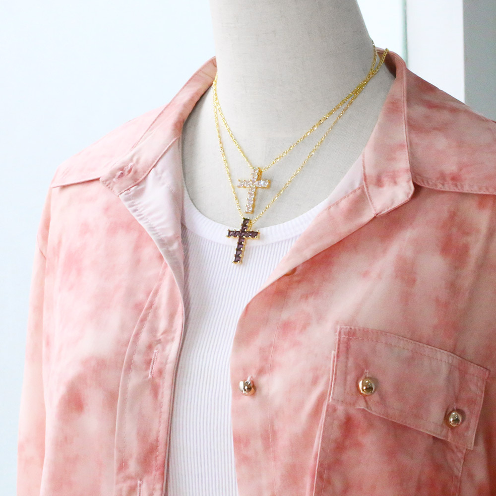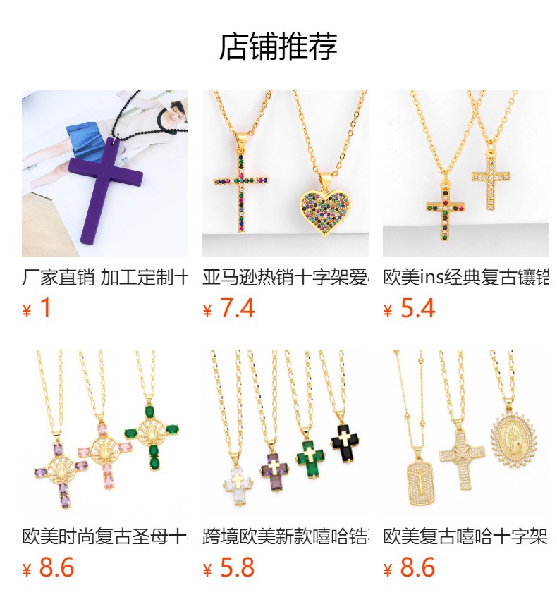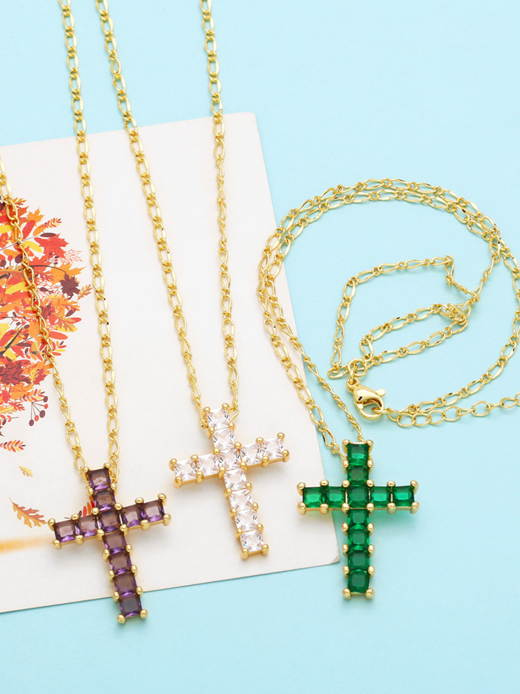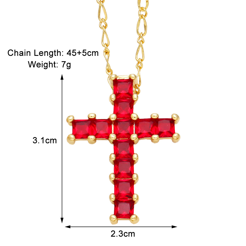European and American popular cross necklace niche all-match hip-hop color zircon clavicle chain nkb373