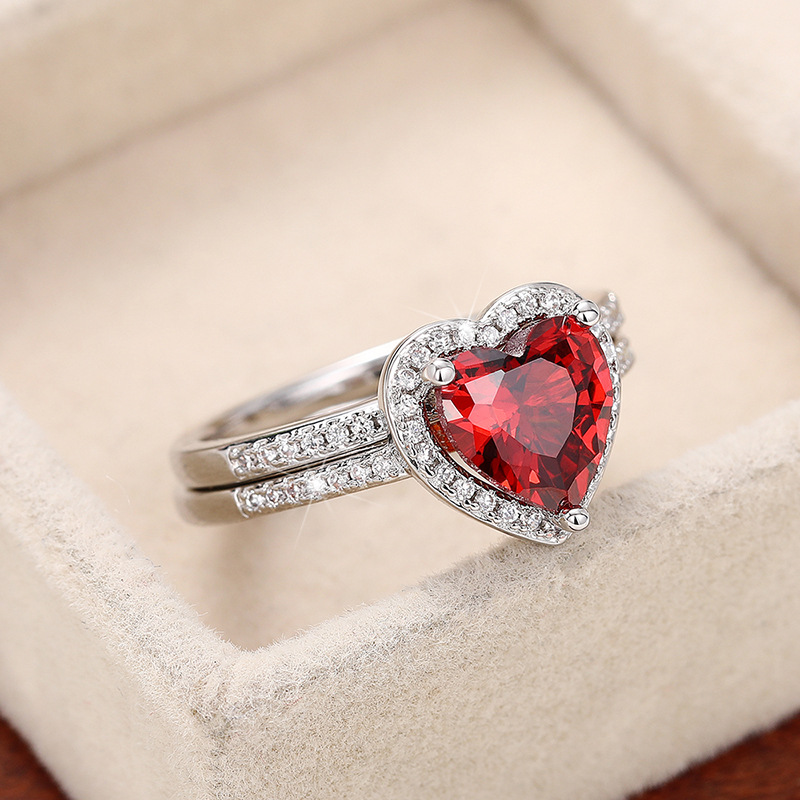 European and American popular double-layer heart-shaped zircon ring couple wedding fashion ring