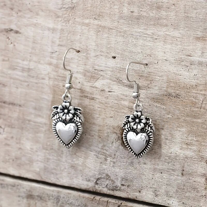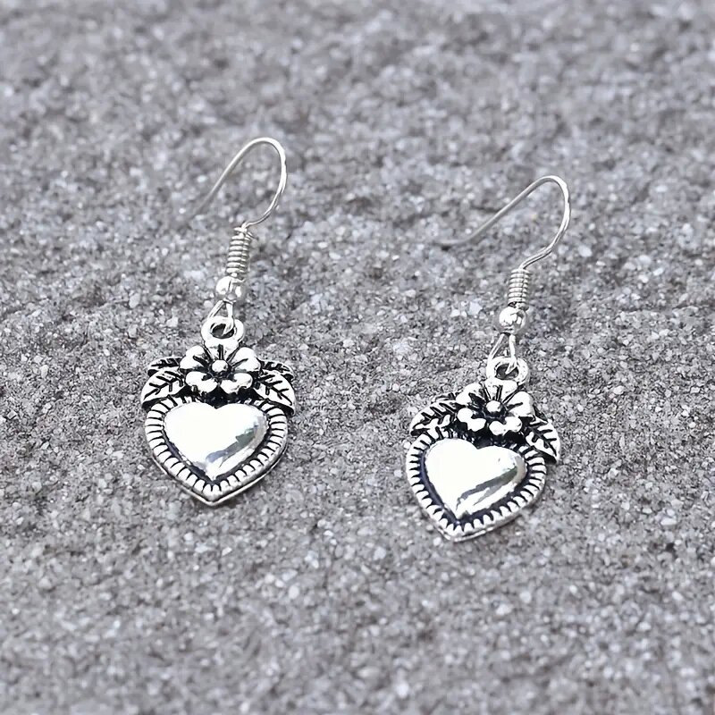 European and American popular earrings retro blackened old style love flower earrings heart-shaped female ear hooks