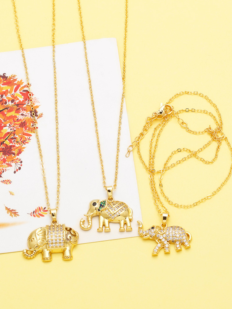 European and American popular elephant necklace female temperament versatile inlaid zircon gold-plated hip-hop clavicle chain jewelry nkb818