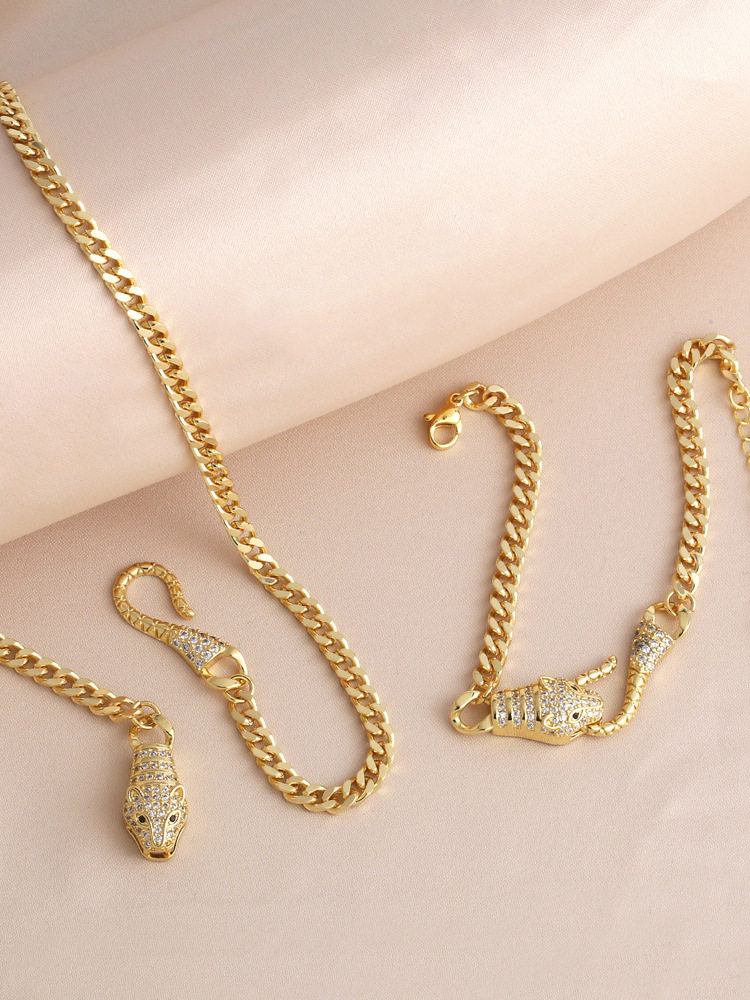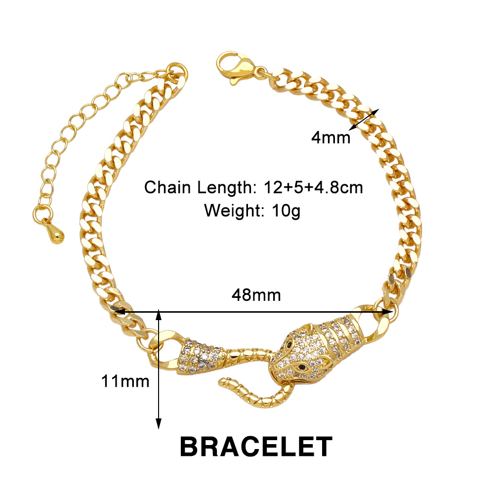 European and American popular fashion temperament full diamond necklace personality exaggerated hip-hop gold-plated leopard head hand jewelry bracelet nkq84