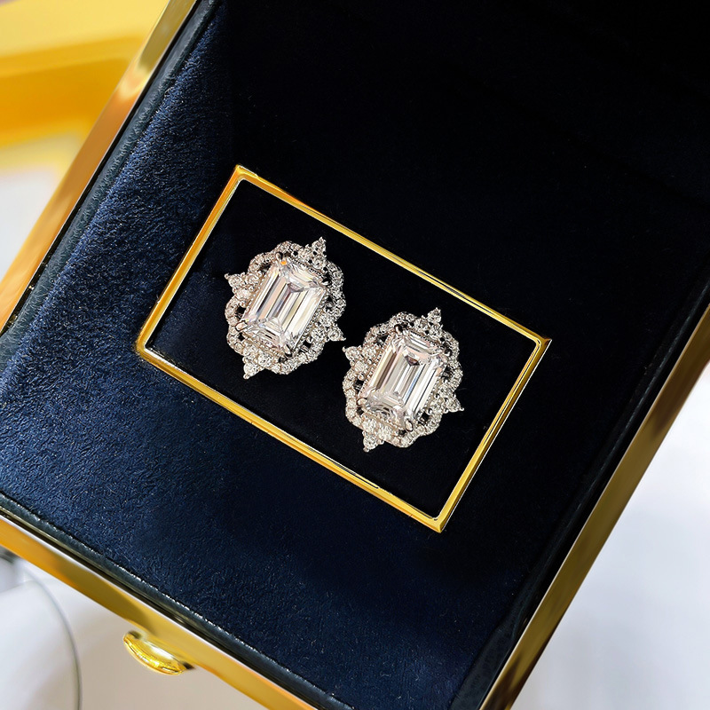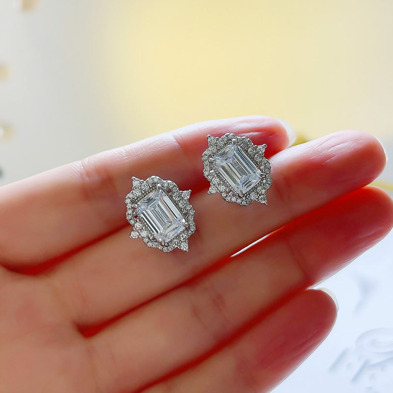 European and American popular floral earrings fashionable square princess earrings super shiny sugar cube lace female earrings