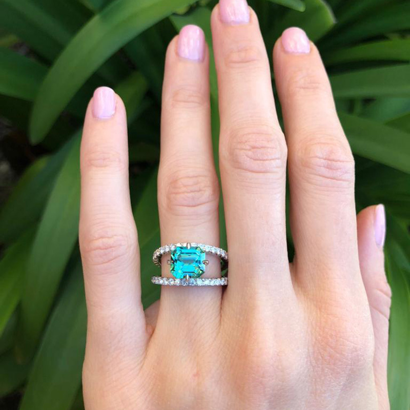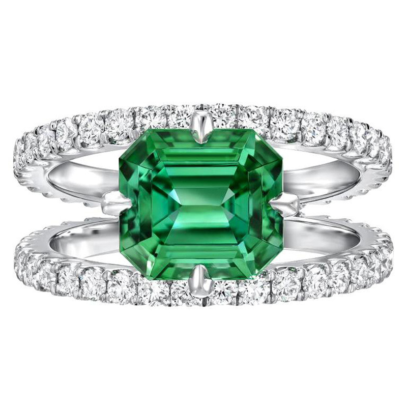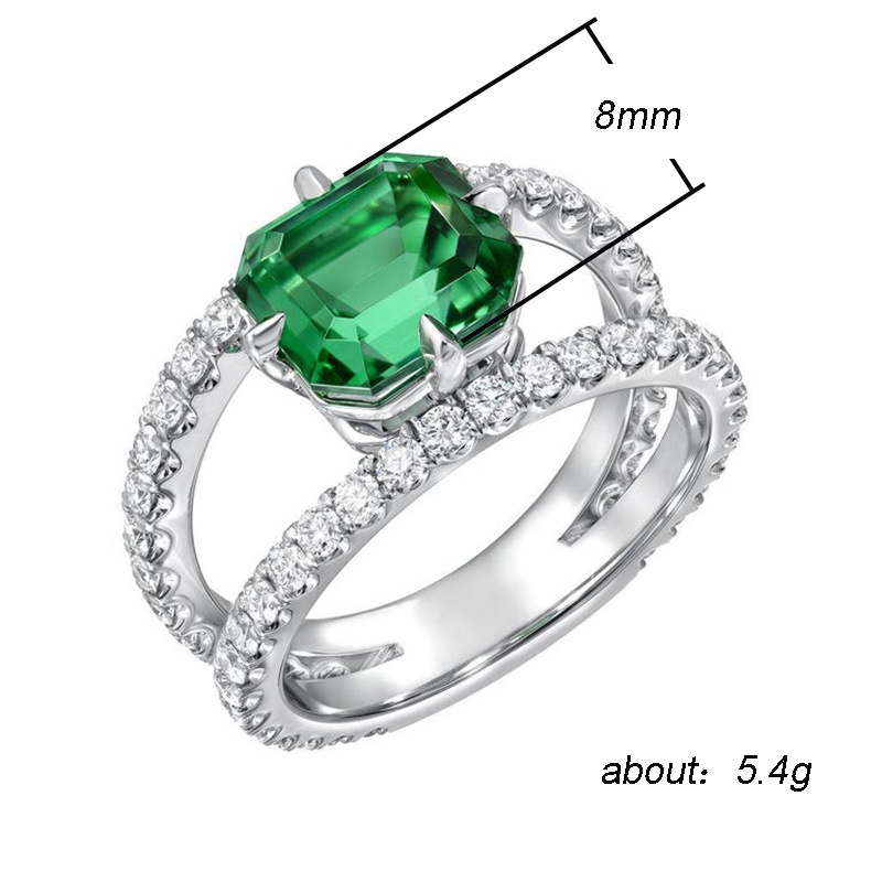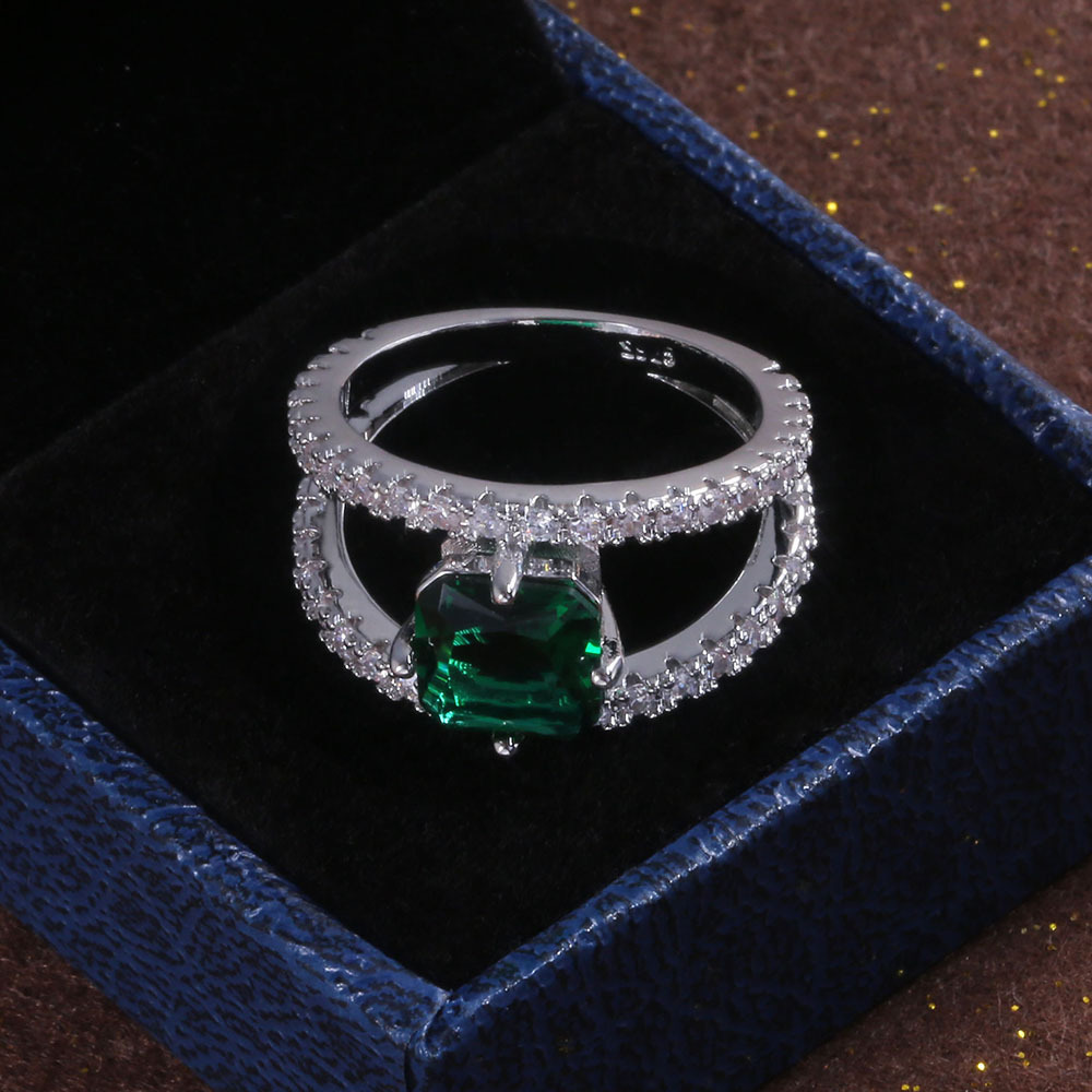 European and American popular jewelry copper plated white k micro inlaid zircon green diamond ring women's exquisite couple's jewelry