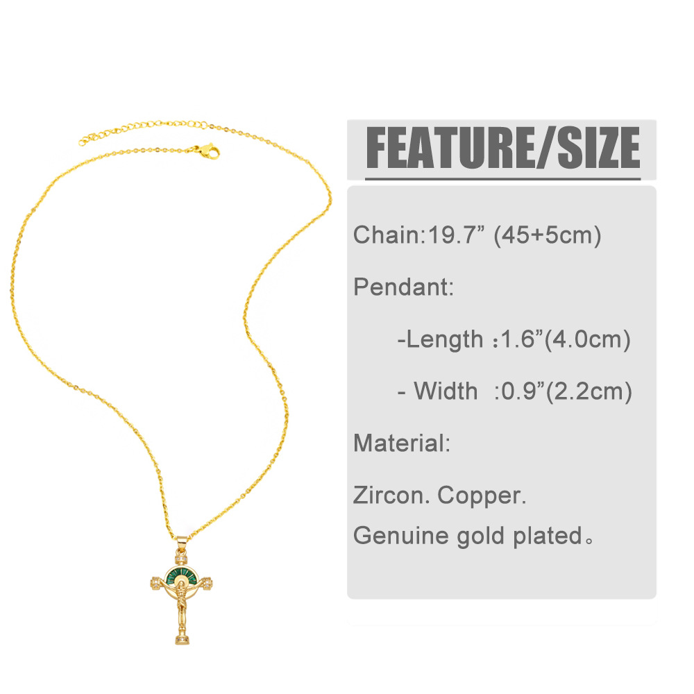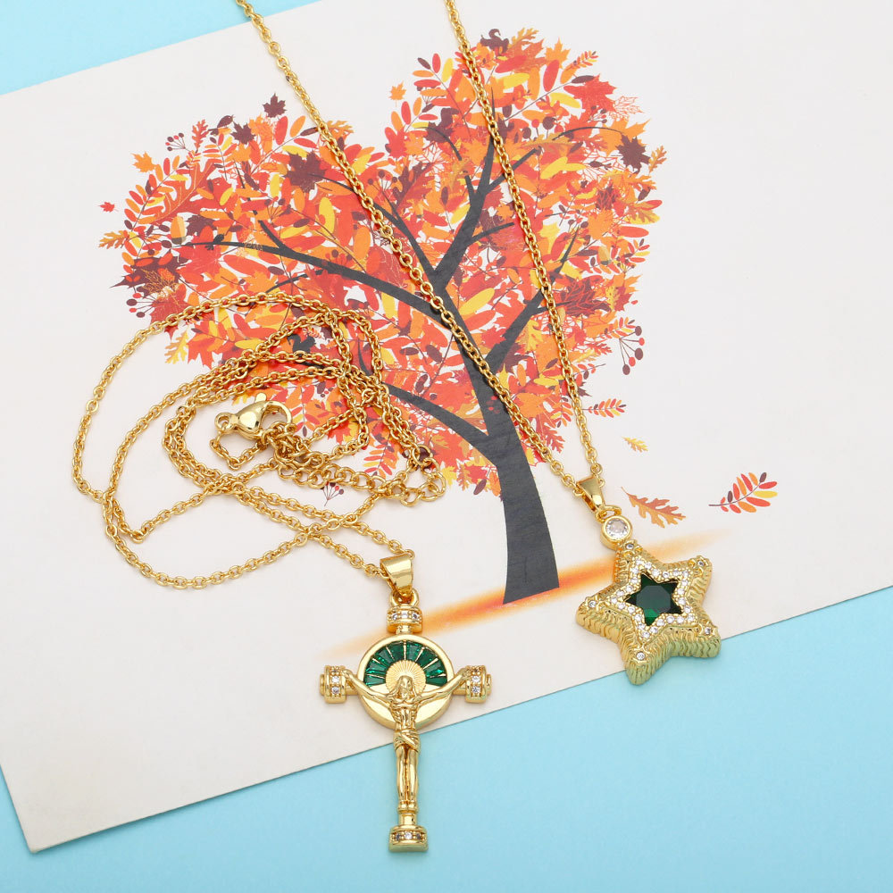 European and American popular jewelry five-pointed star necklace retro light luxury peacock green zircon cross necklace nkb391