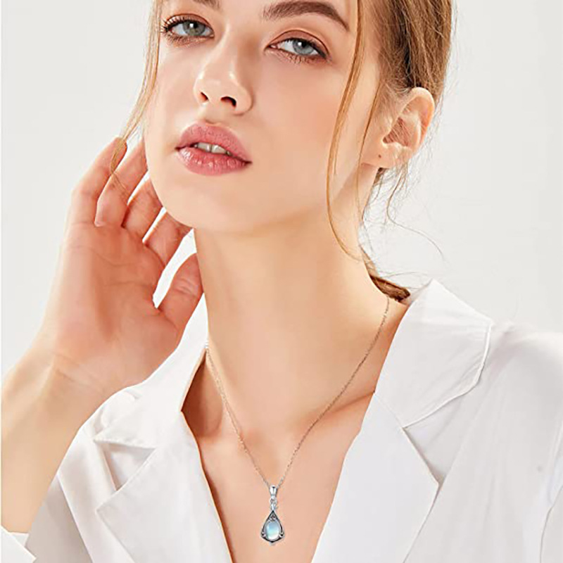 European and American popular jewelry imitation moonstone vine necklace women's teardrop shape antique silver pendant