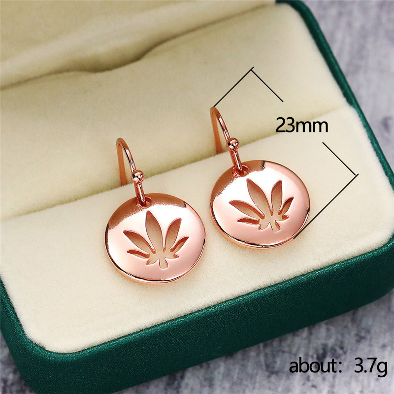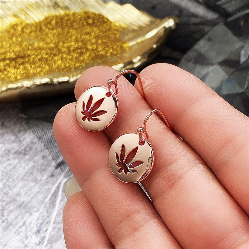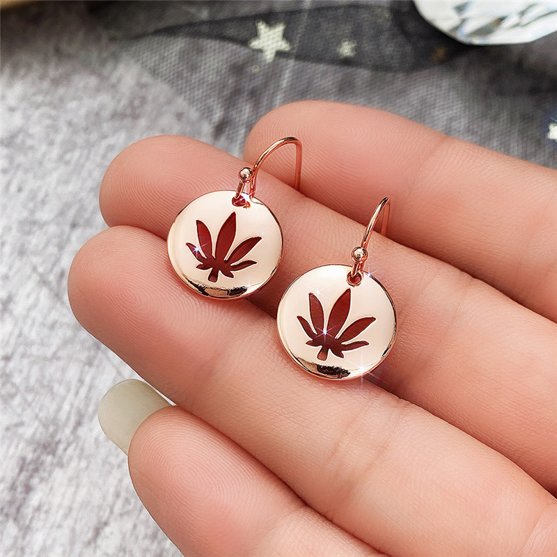 European and American popular jewelry retro simple handmade leaf earrings women's round maple leaf tag earrings