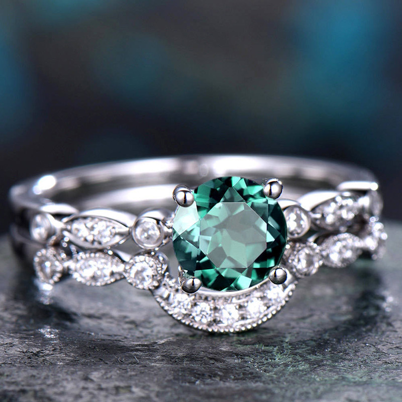 European and American popular ring set simple and versatile artificial emerald ring female copper plated silver micro inlaid zircon ring