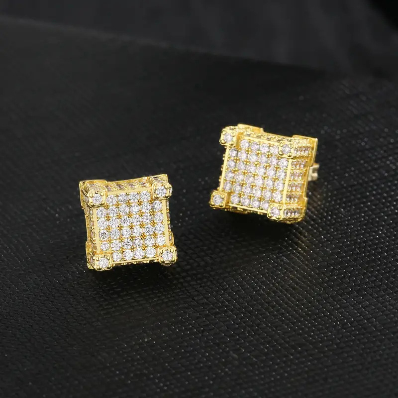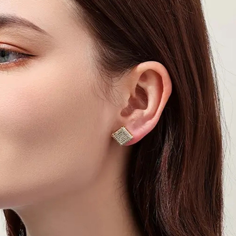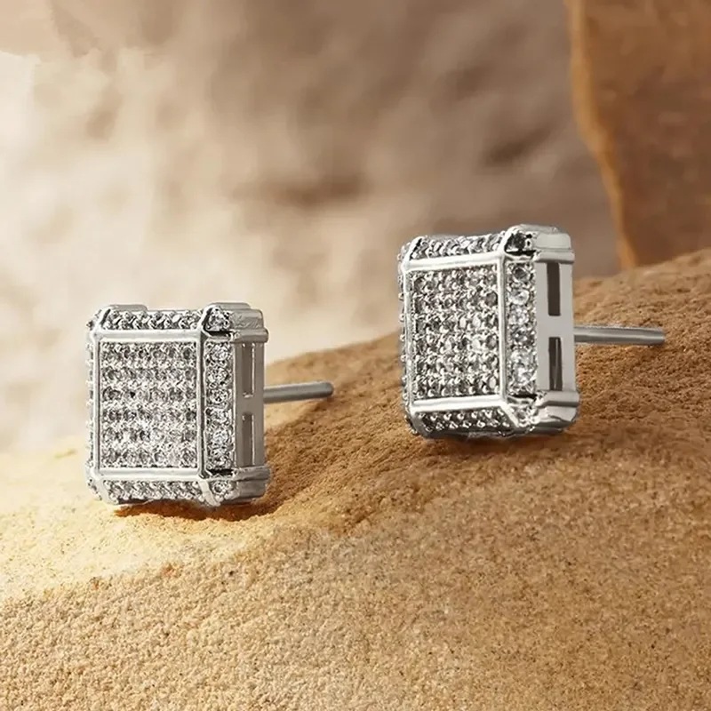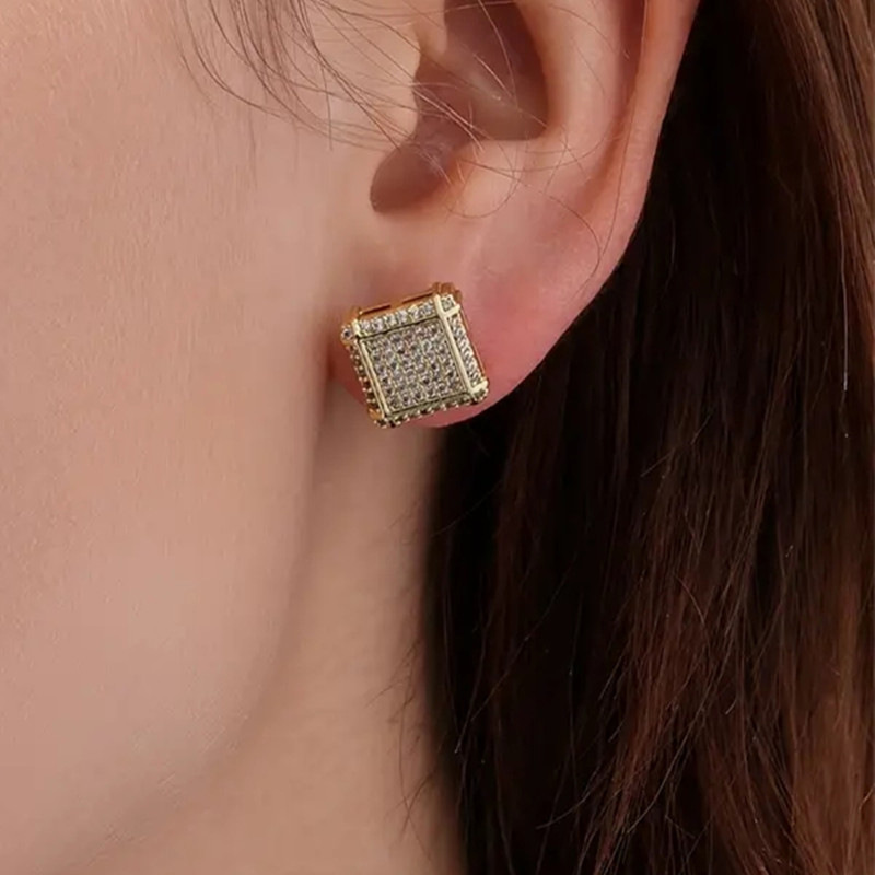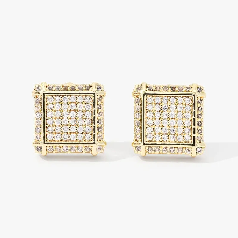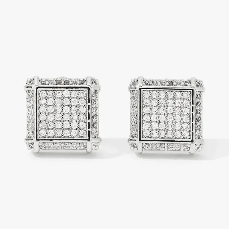 European and American popular square hip-hop earrings full of zircon micro-inlaid earrings men's trendy hiphop earrings