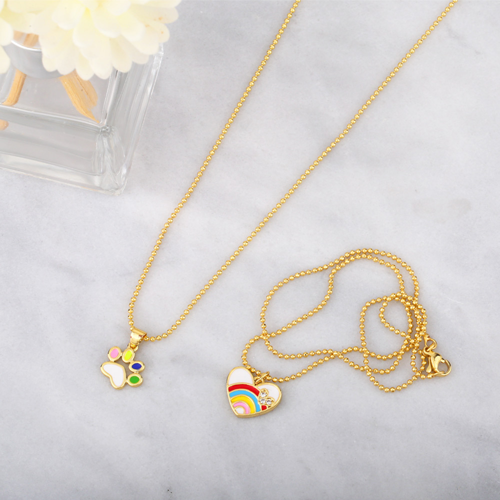 European and American rainbow love necklace female color enamel dog paw print pendant clavicle chain simple sweater chain nkz30