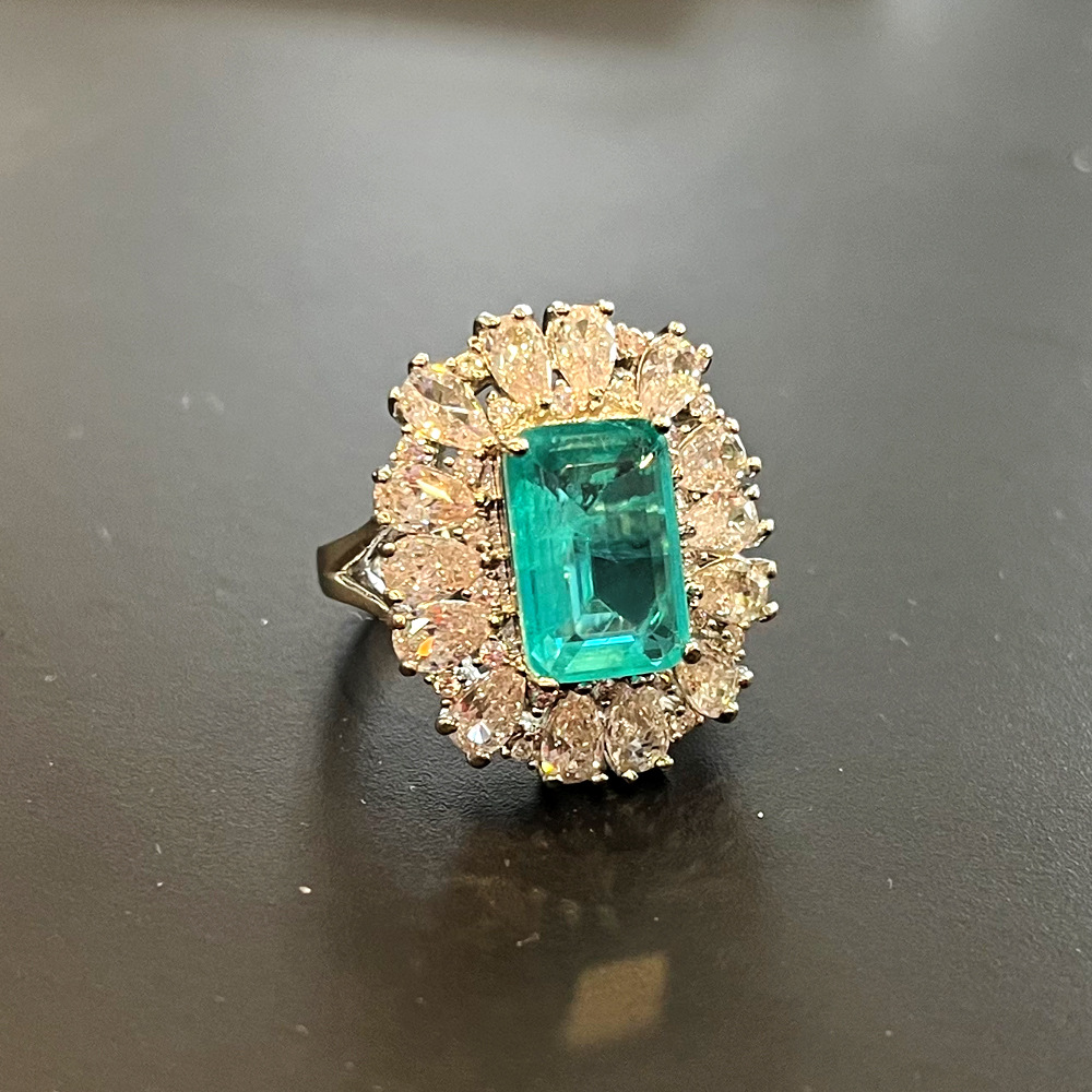 European and American retro 8*12 artificial gem with cotton wool simulation jewelry wedding anniversary gift ring