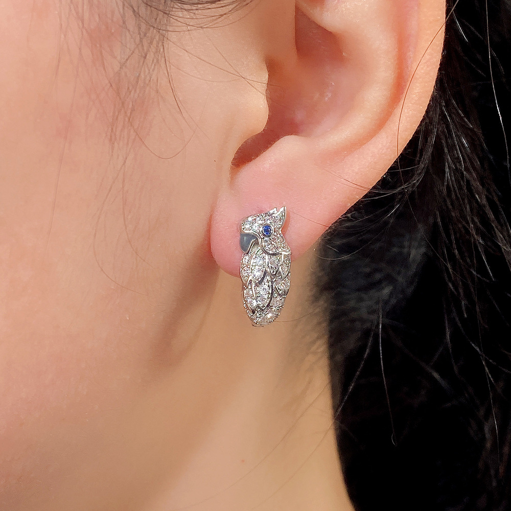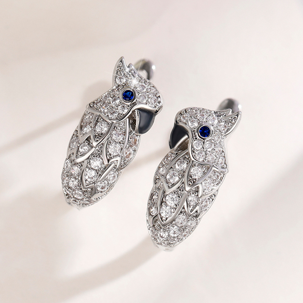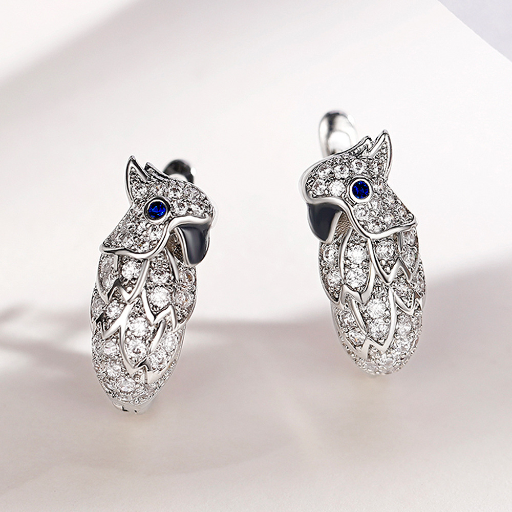 European and American retro animal earrings micro-inlaid zircon parrot ear clips personality trend all-match earrings wholesale