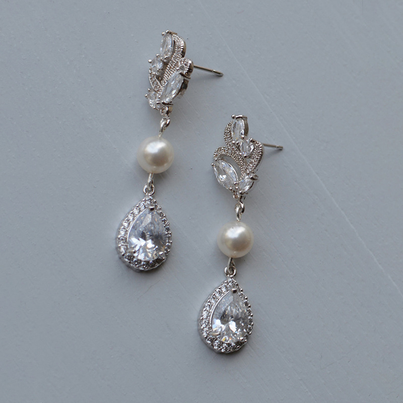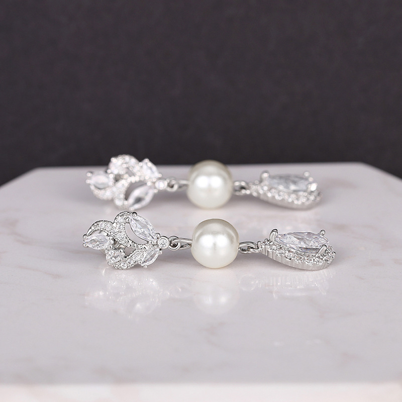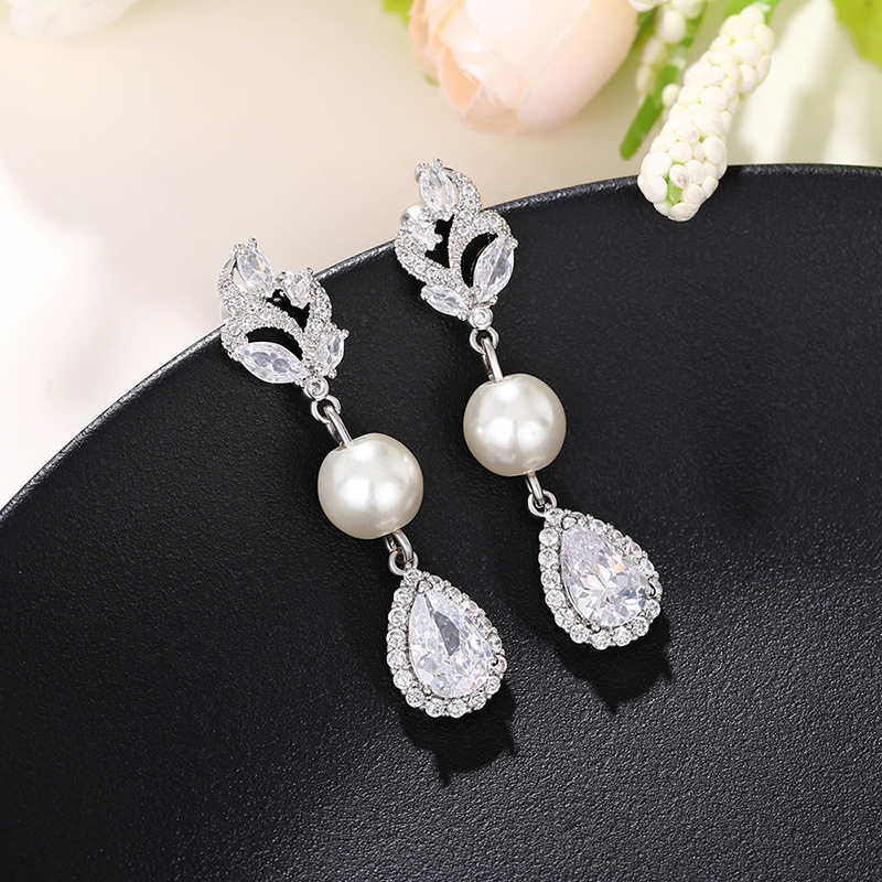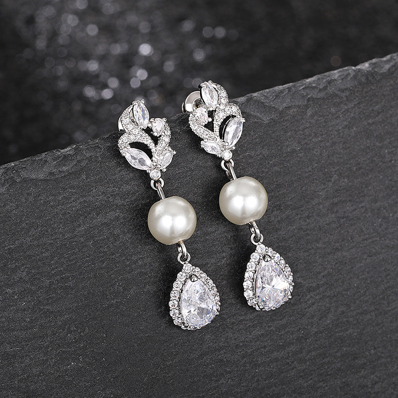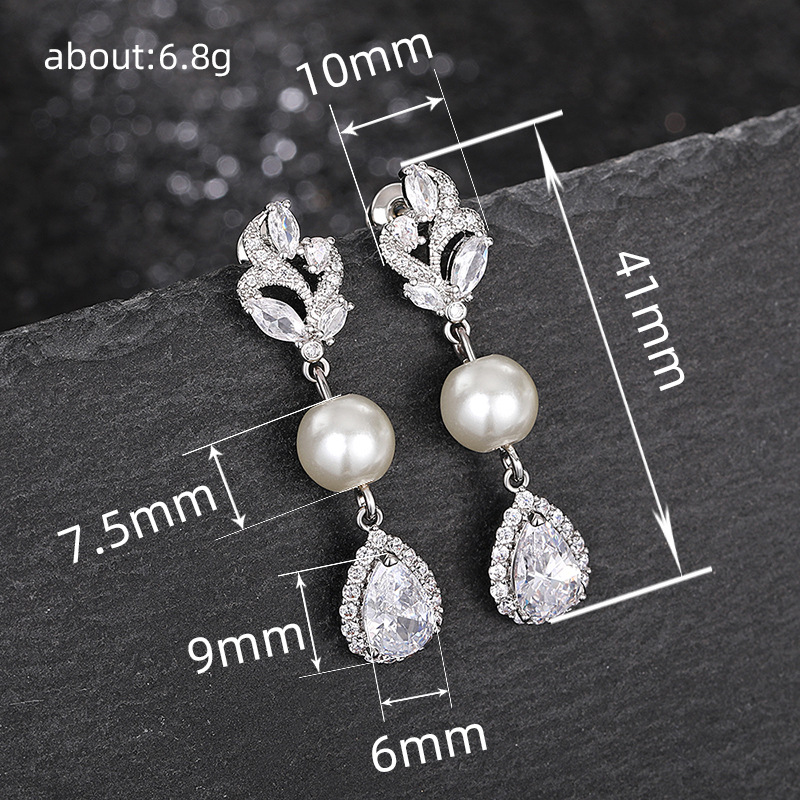 European and American retro floral earrings, French style imitation pearl earrings, teardrop-shaped long women's earrings