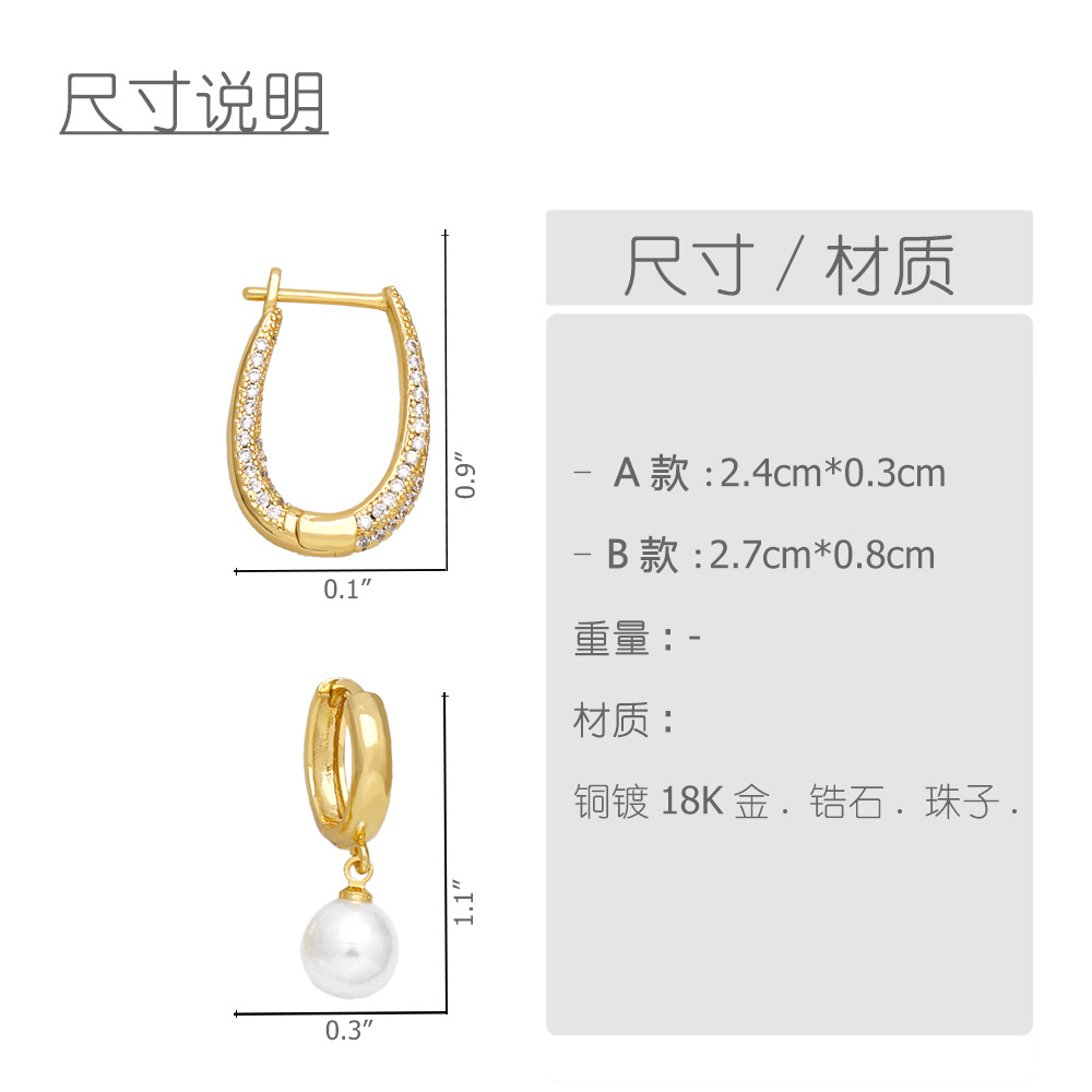 European and American personality retro U-shaped zircon earrings earrings light luxury high-end simple temperament earrings earrings female ert86