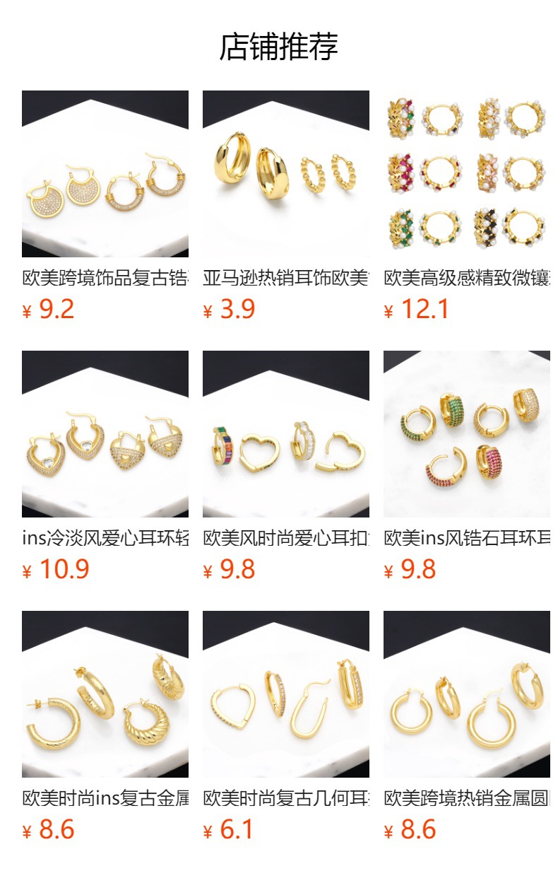 Clearance European and American high-end diamond heart earrings personality metal earrings cold style earrings ers64