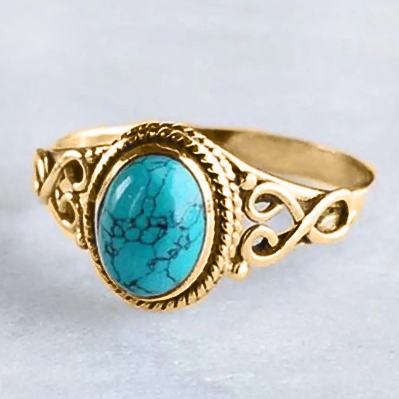 European and American retro imitation turquoise hollow ring white trendy niche design index finger ring pattern ring