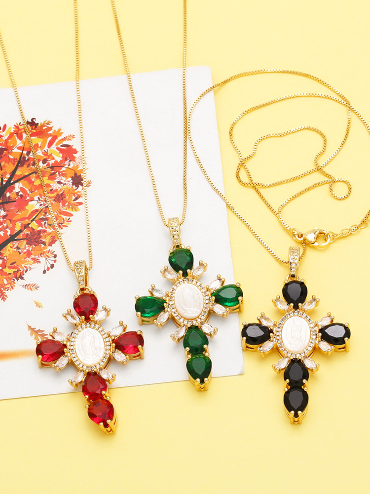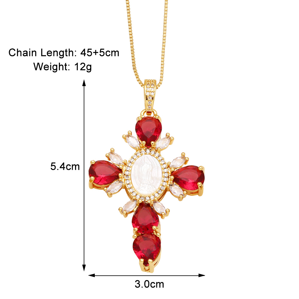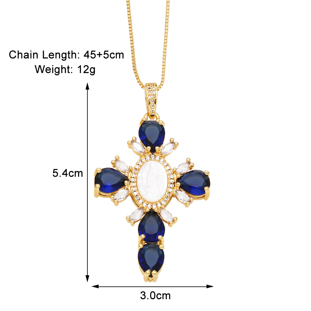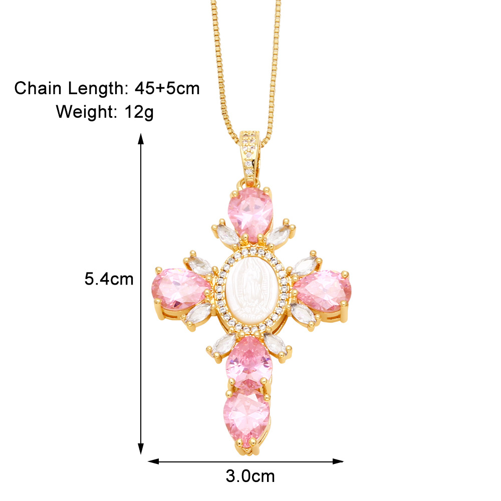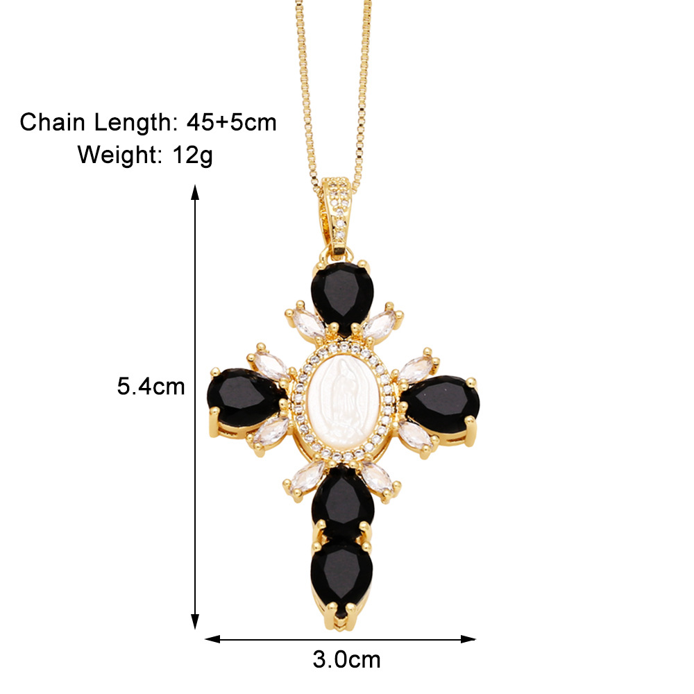 European and American retro jewelry necklace simple fashion cross Madonna inlaid zircon high-end clavicle chain nkq12