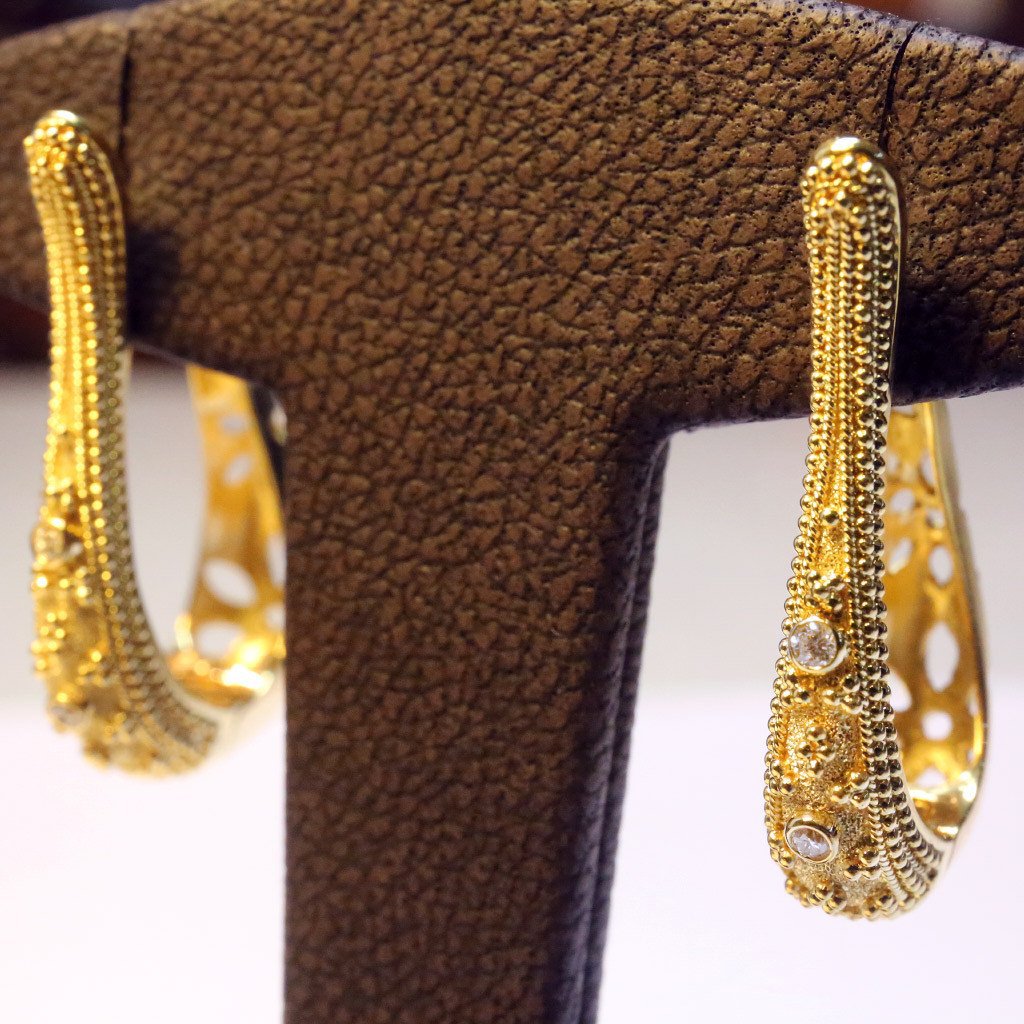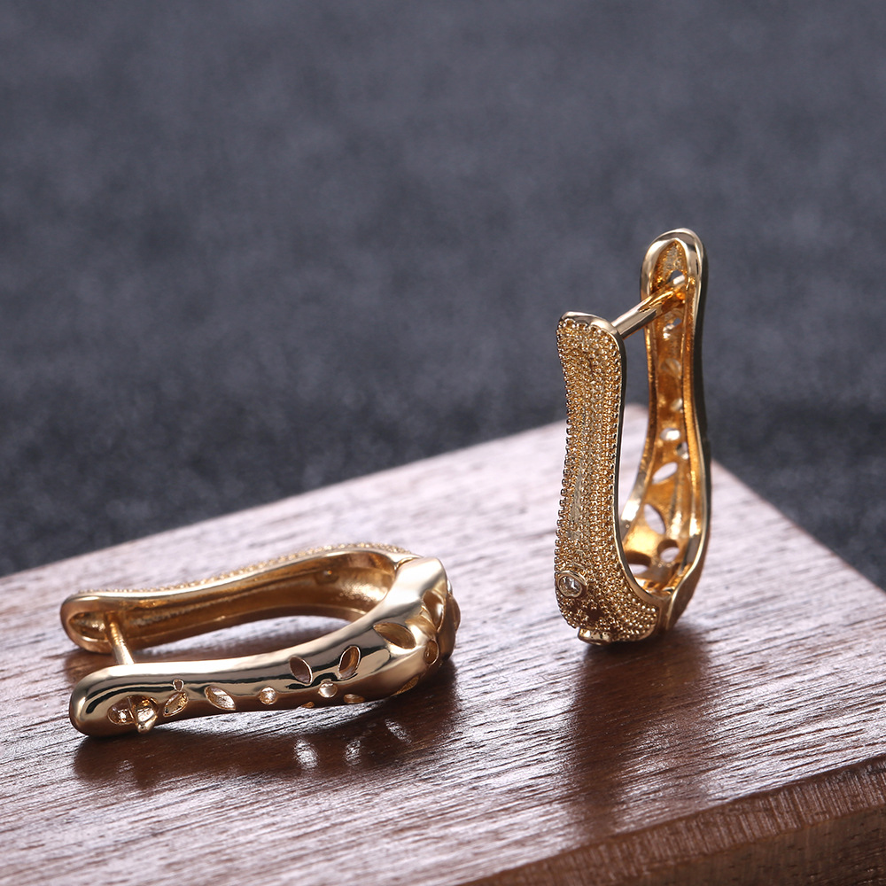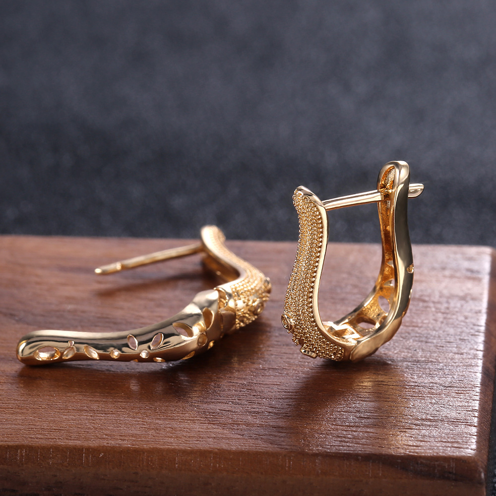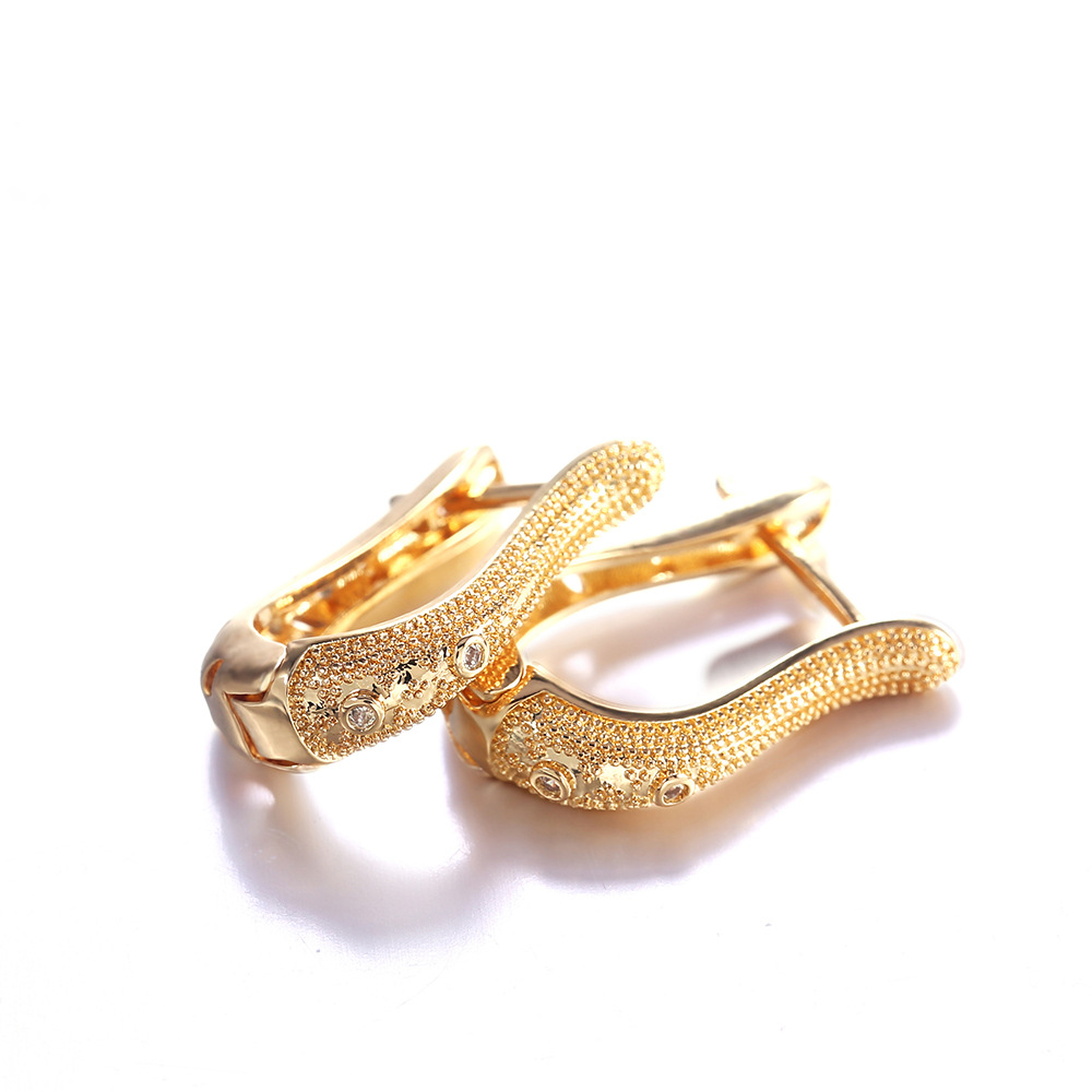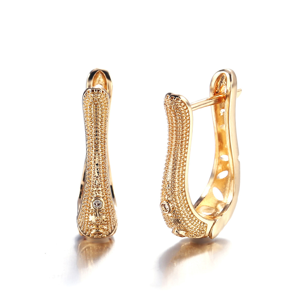 European and American retro ladies U-shaped earrings, elegant and elegant golden zircon earrings, copper-plated gold earrings
