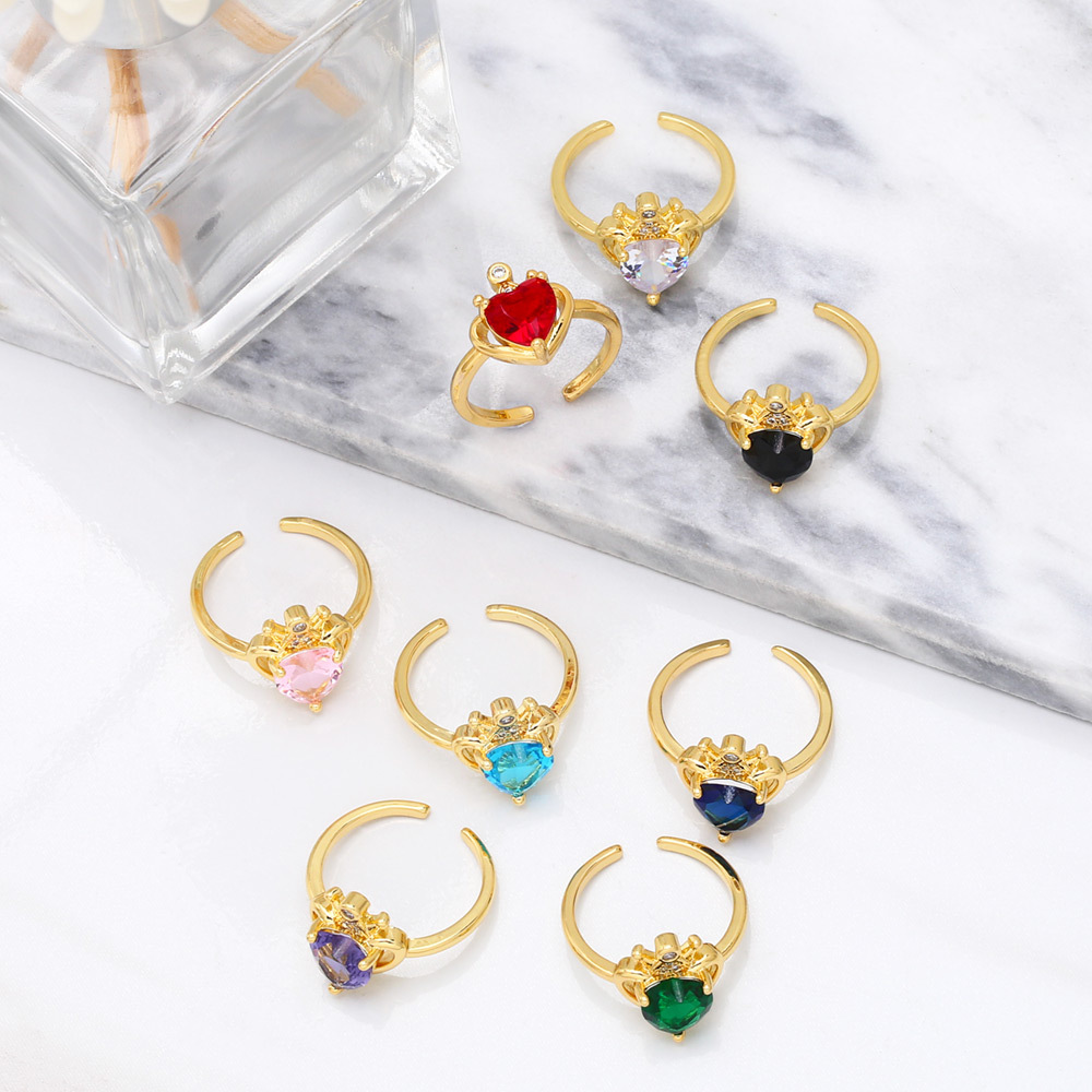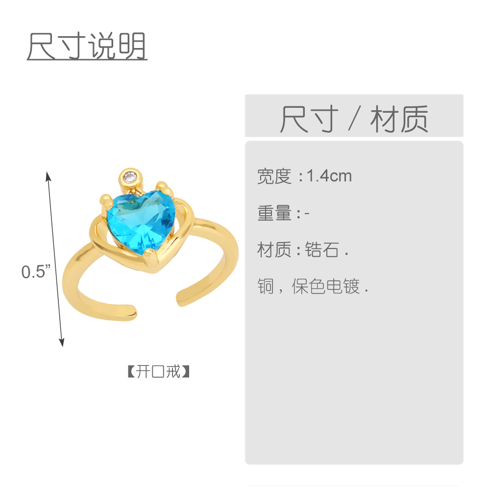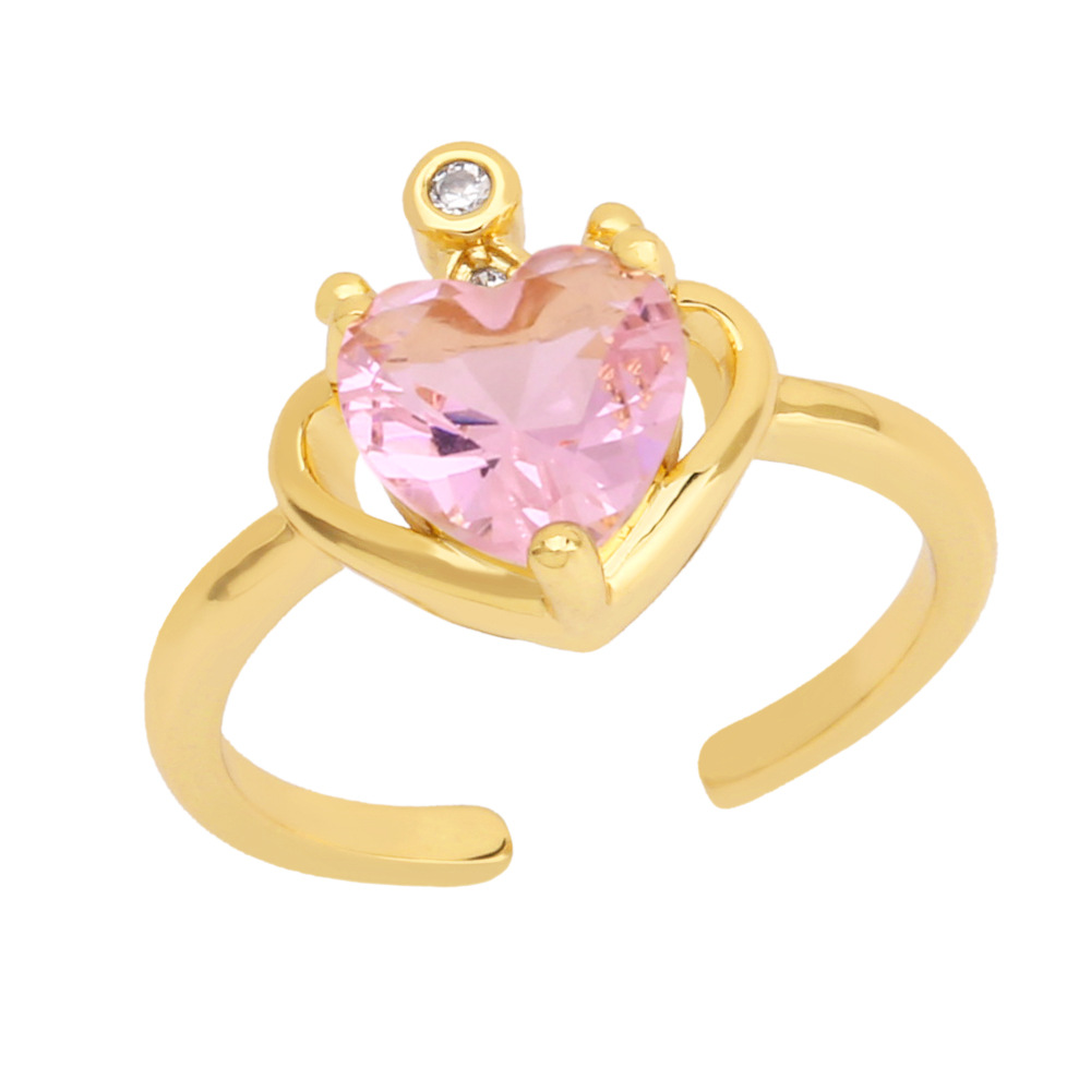 European and American retro love ring Internet celebrity all-match light luxury temperament crown love inlaid zircon open ring rin96