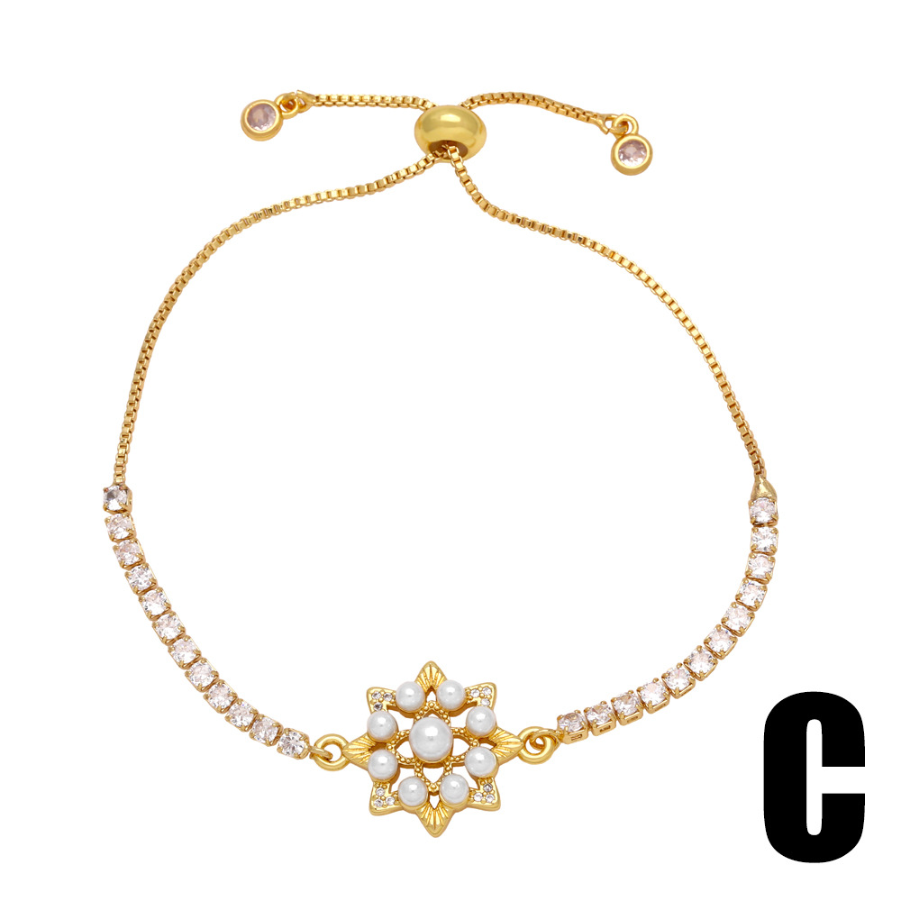 European and American retro micro-inlaid pearl zircon flower bracelet female style niche high-end hand jewelry wholesale brh92