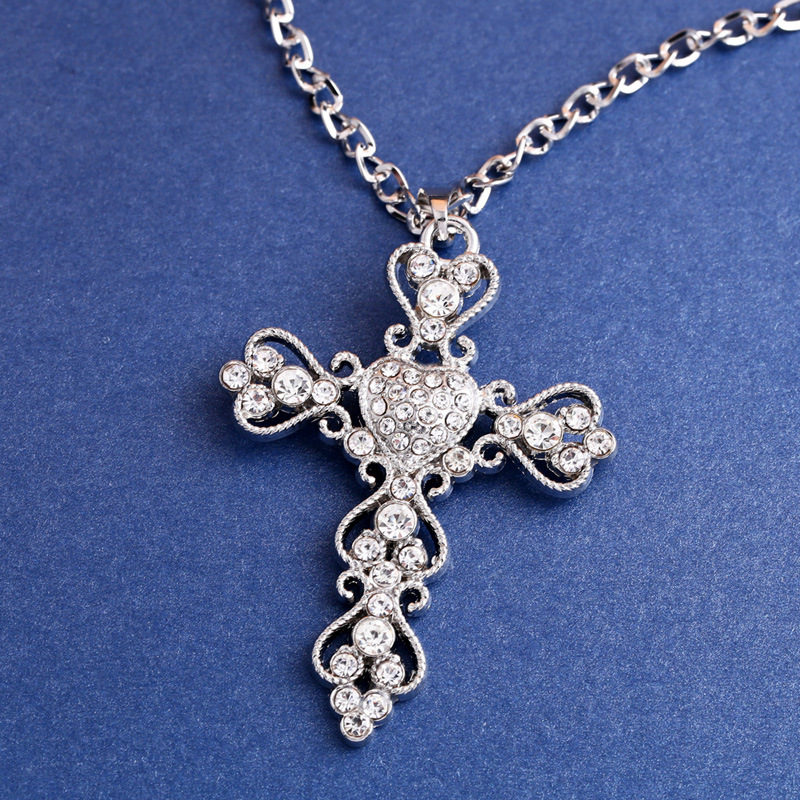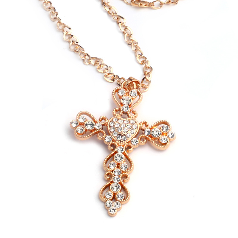 European and American retro palace heart-shaped cross pendant with diamond long necklace jewelry factory direct sales nkk05