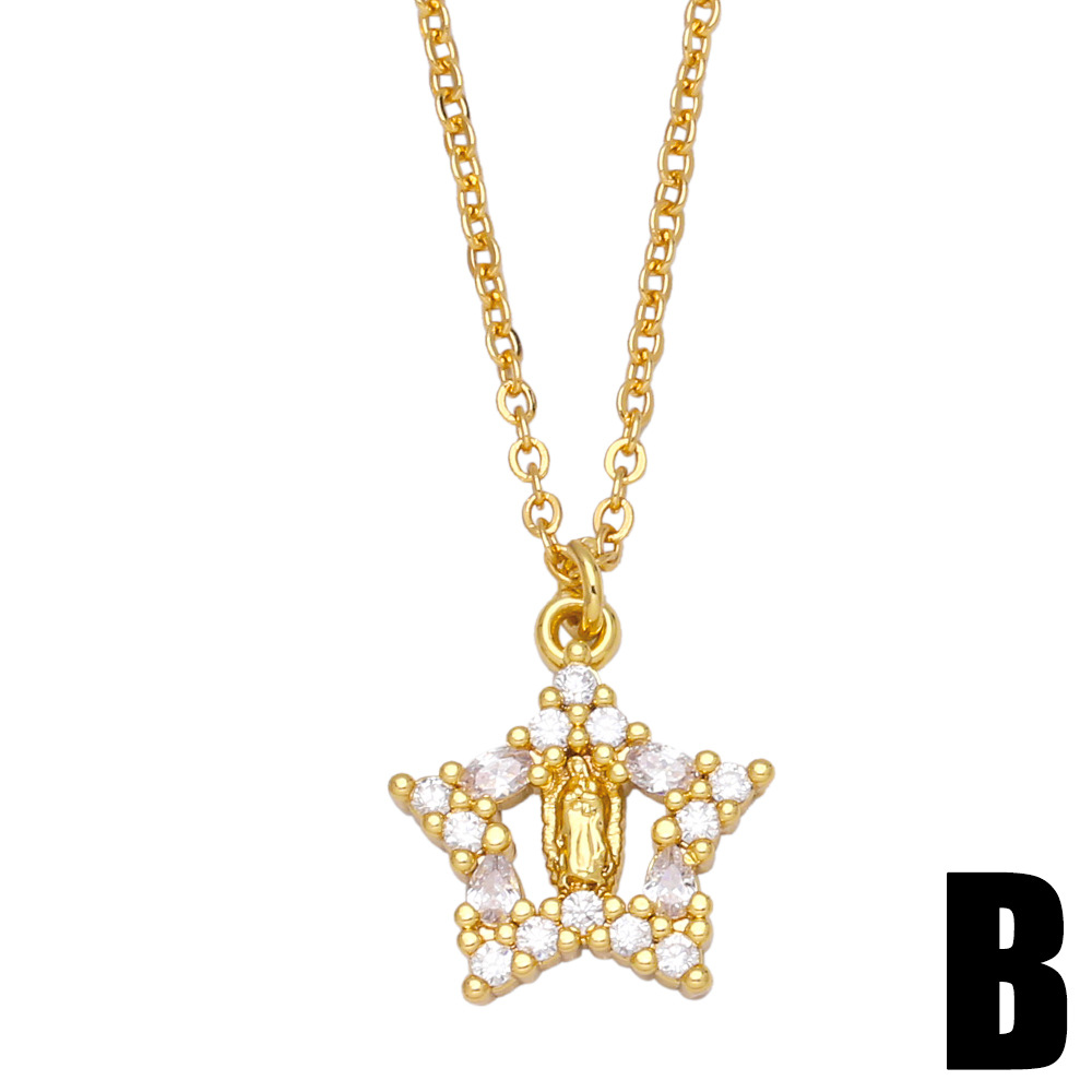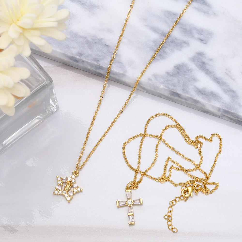 European and American retro personality diamond Our Lady cross necklace female niche light luxury zircon pendant clavicle chain nka081