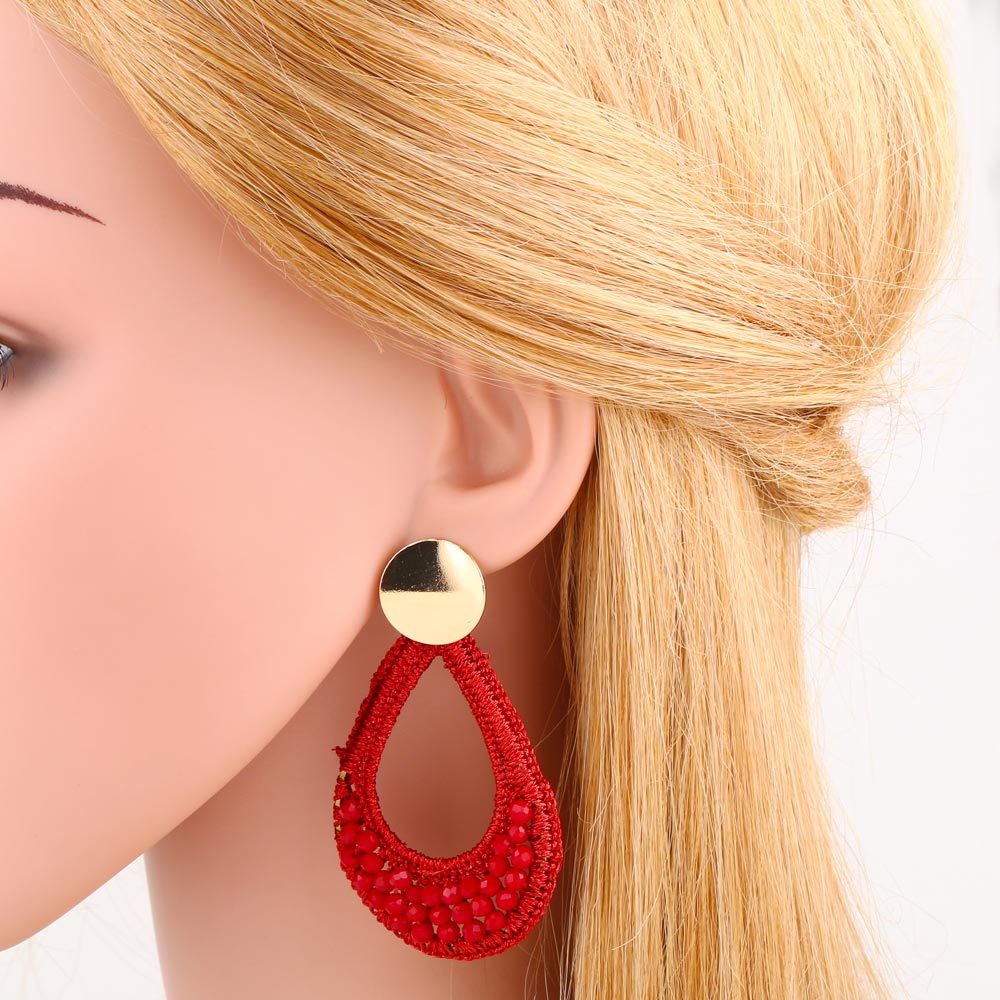 European and American retro rice bead water drop earrings ethnic style geometric earrings Bohemian handmade earrings female era198