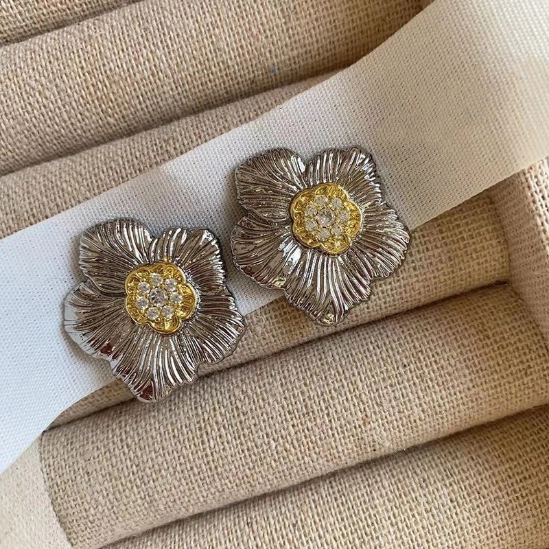 European and American retro texture earrings gardenia two-color elegant fresh earrings temperament light luxury flower earrings