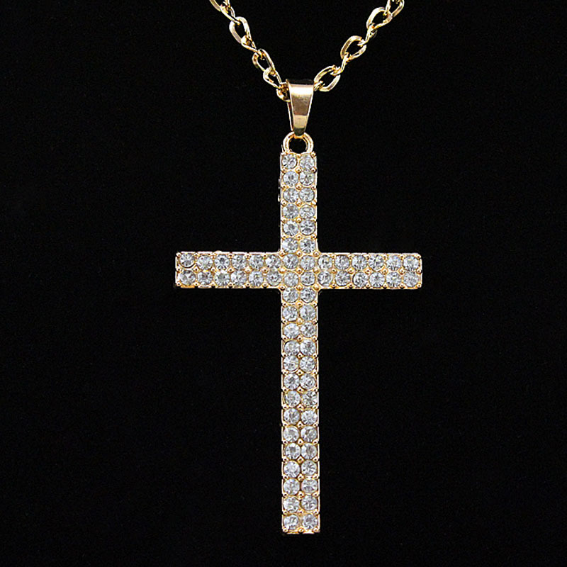 European and American rock hip-hop diamond-studded cross men's and women's long necklace sweater chain nkg80 pendant