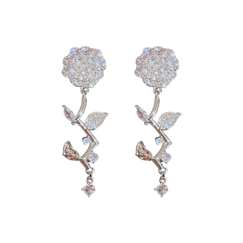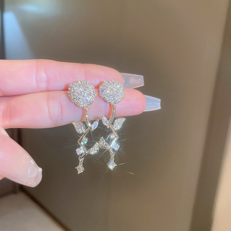 European and American rose earrings for women, fashionable and exquisite inlaid zircon earrings, shiny and elegant