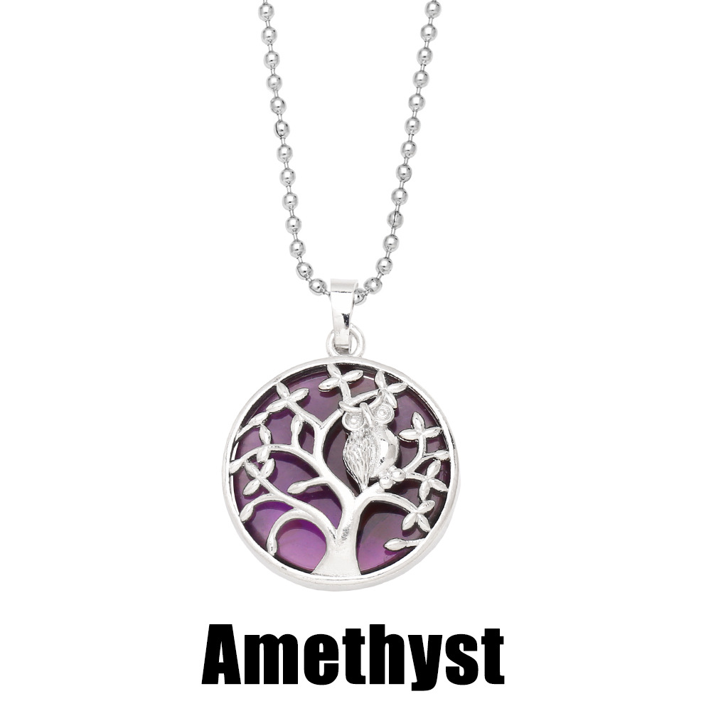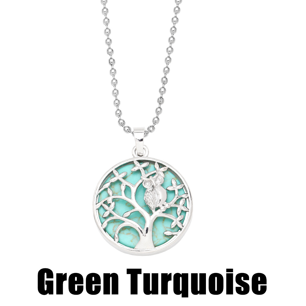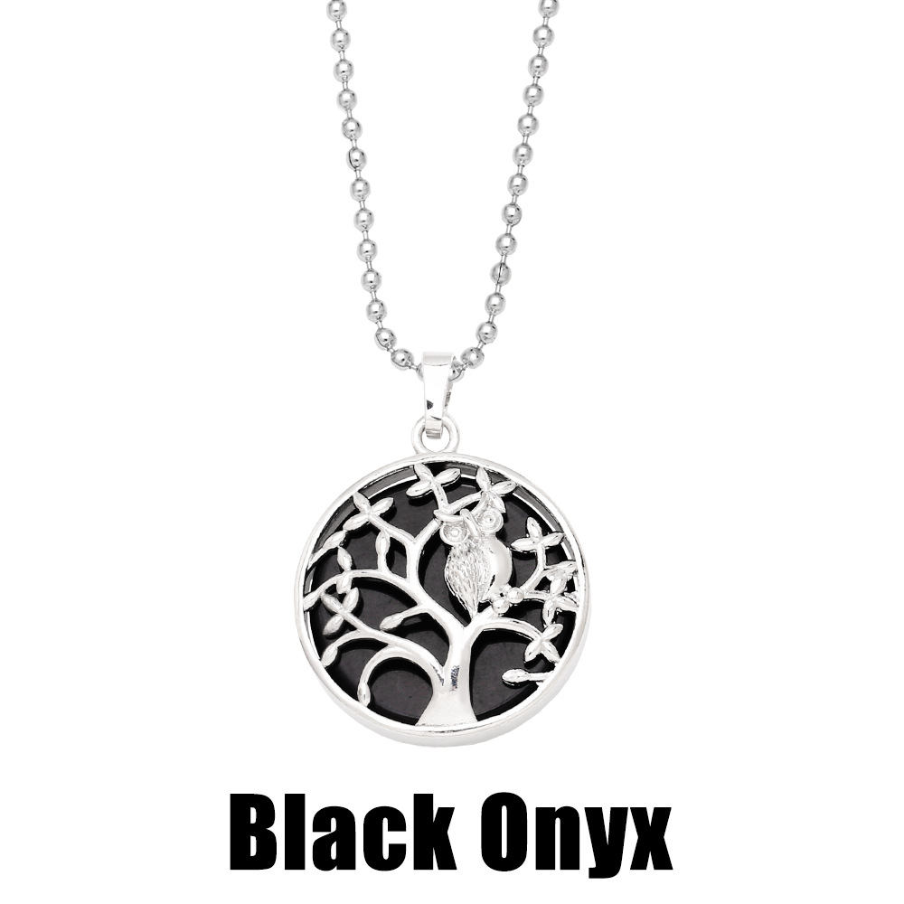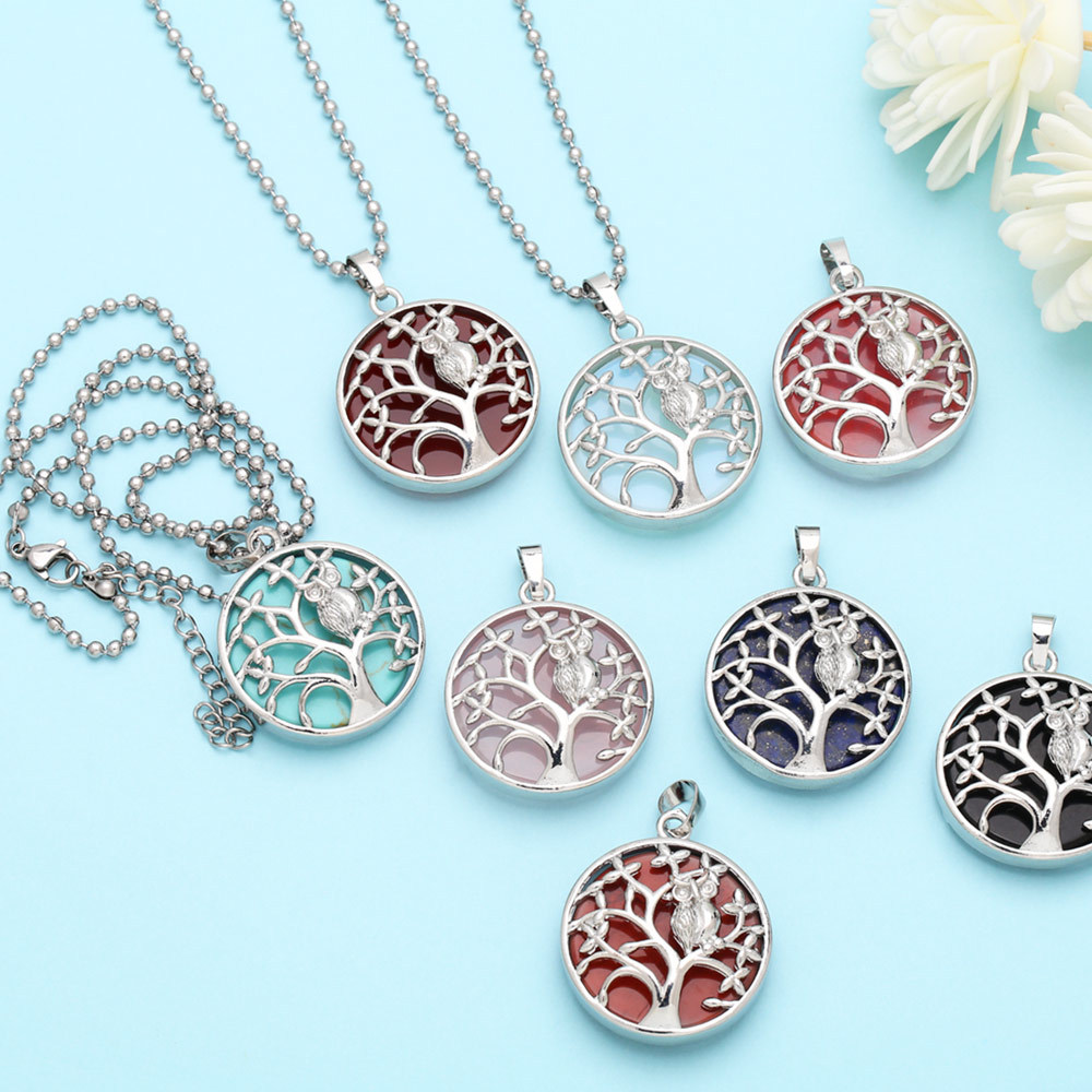 European and American round owl tree of life necklace female retro crystal agate necklace nkb634