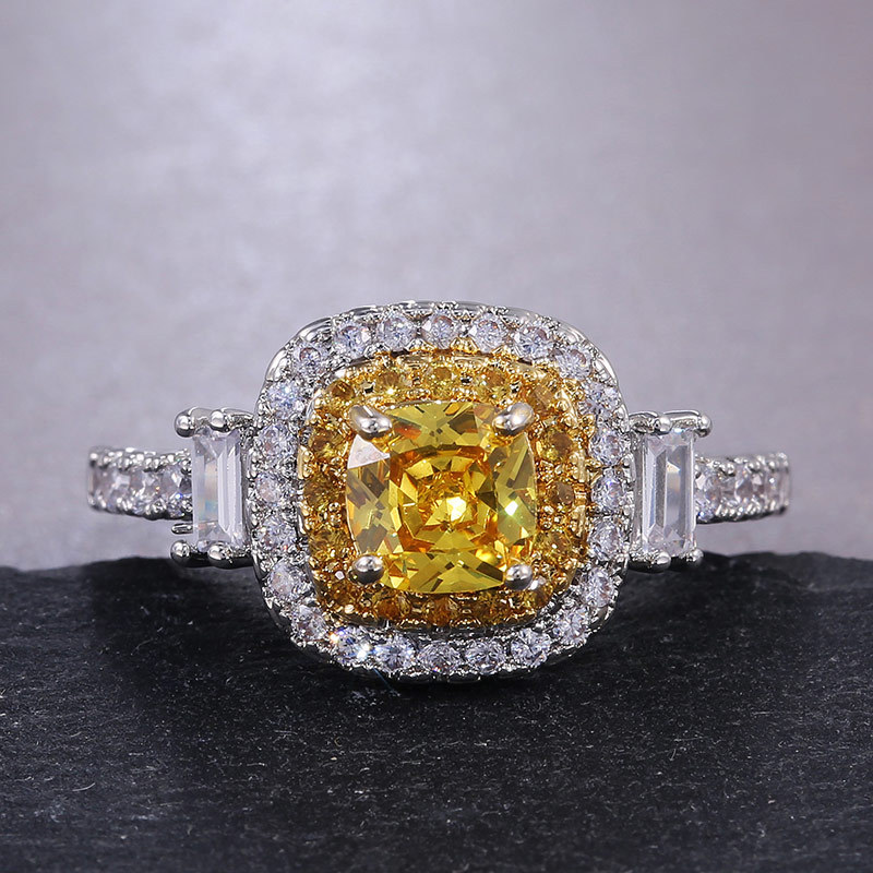 Hot selling new princess square ring European and American hot style inlaid zircon women's jewelry engagement proposal ring
