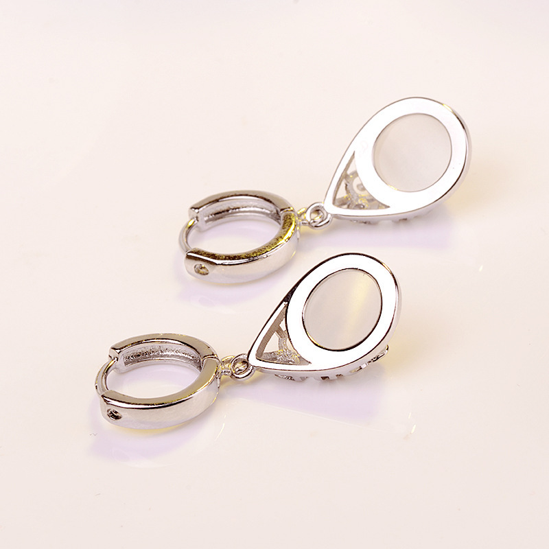 European and American silver-plated earrings imitating moonlight cat's eye stone totem ear clip earrings female wishing pool earrings ear jewelry