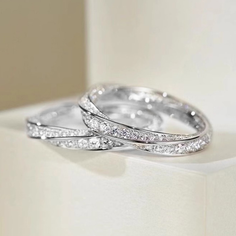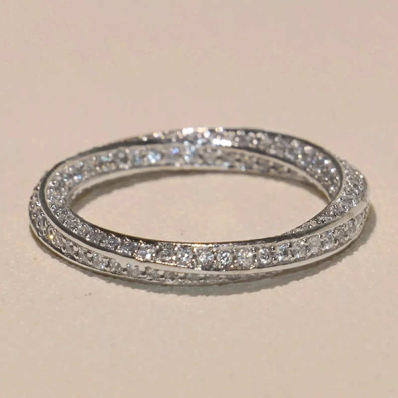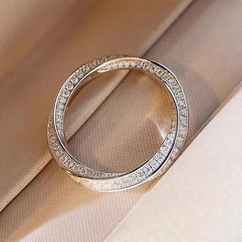 Classic four-claw imitation zircon micro-inlaid ring women's double row two-color twist arm ring engagement wedding ring women