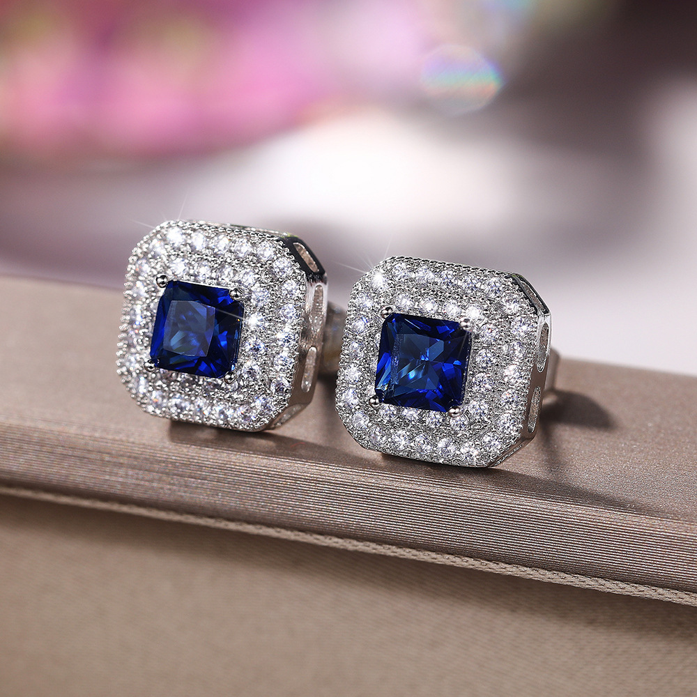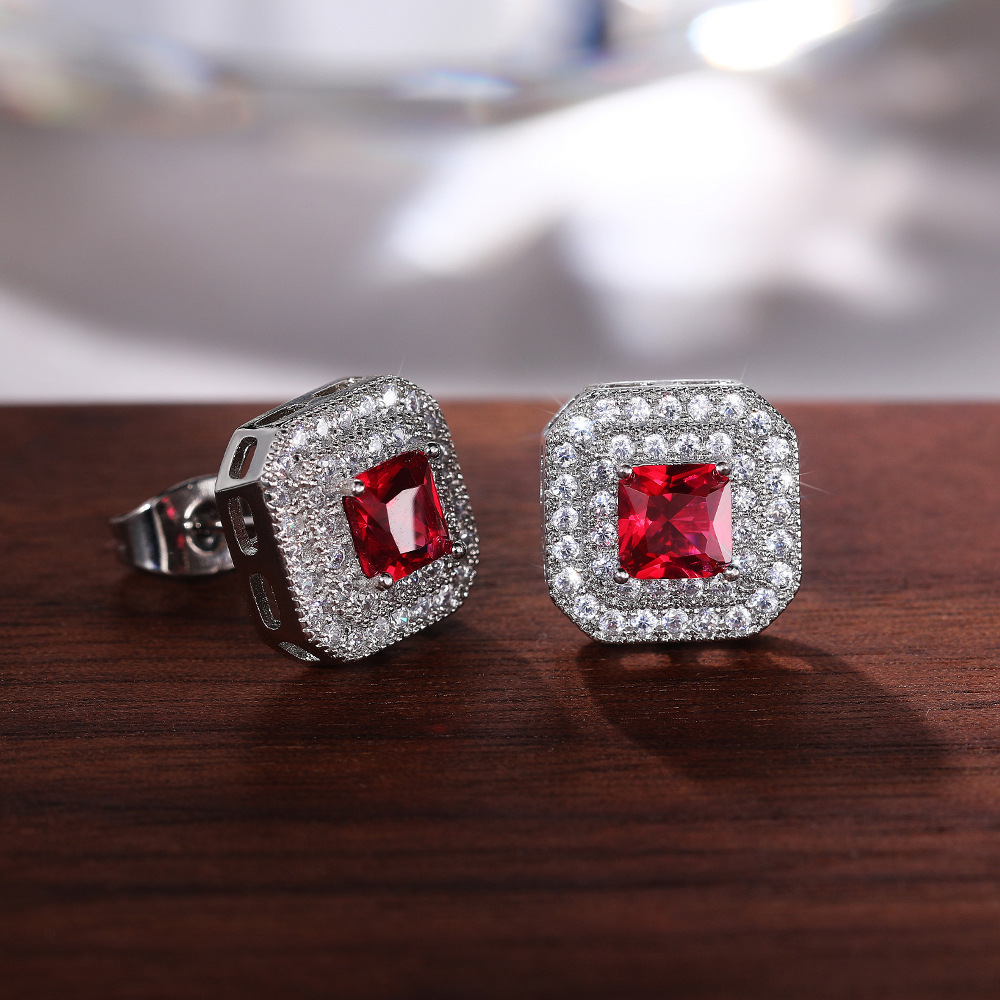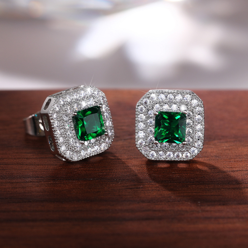 European and American simple earrings fashion classic women's square zircon copper earrings supply