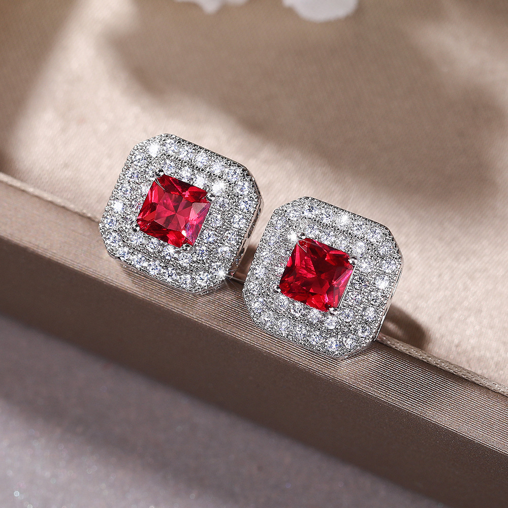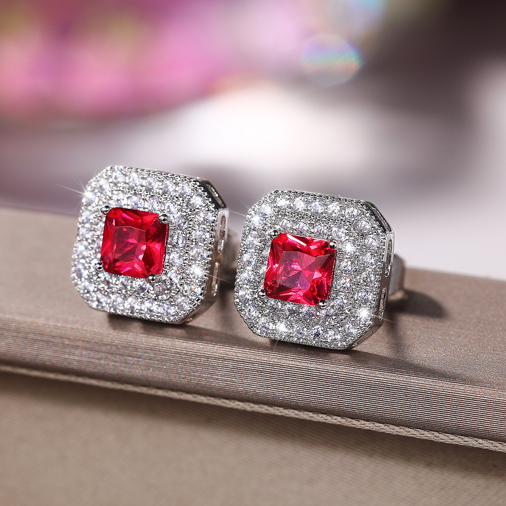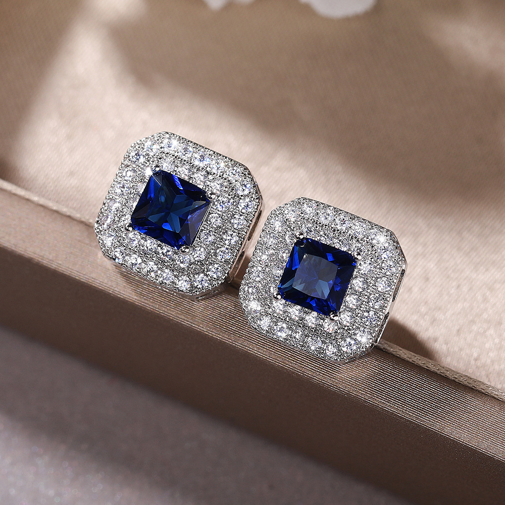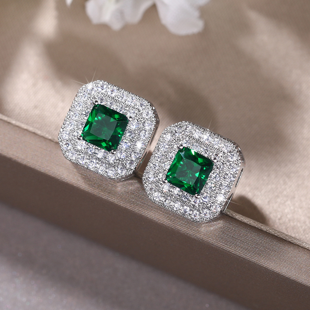 European and American simple earrings fashion classic women's square zircon copper earrings supply