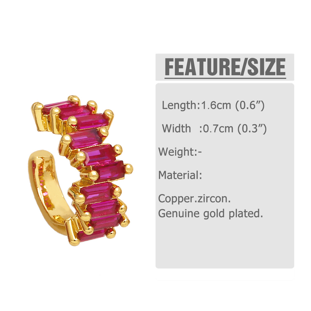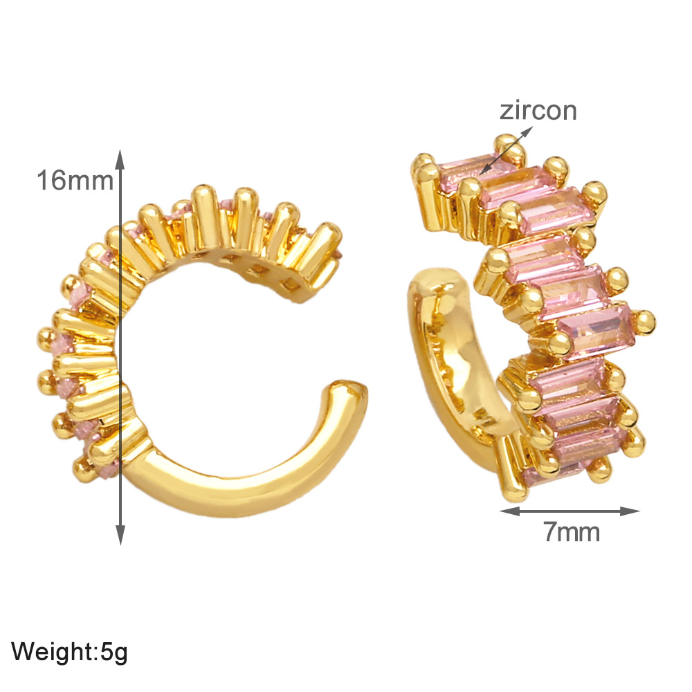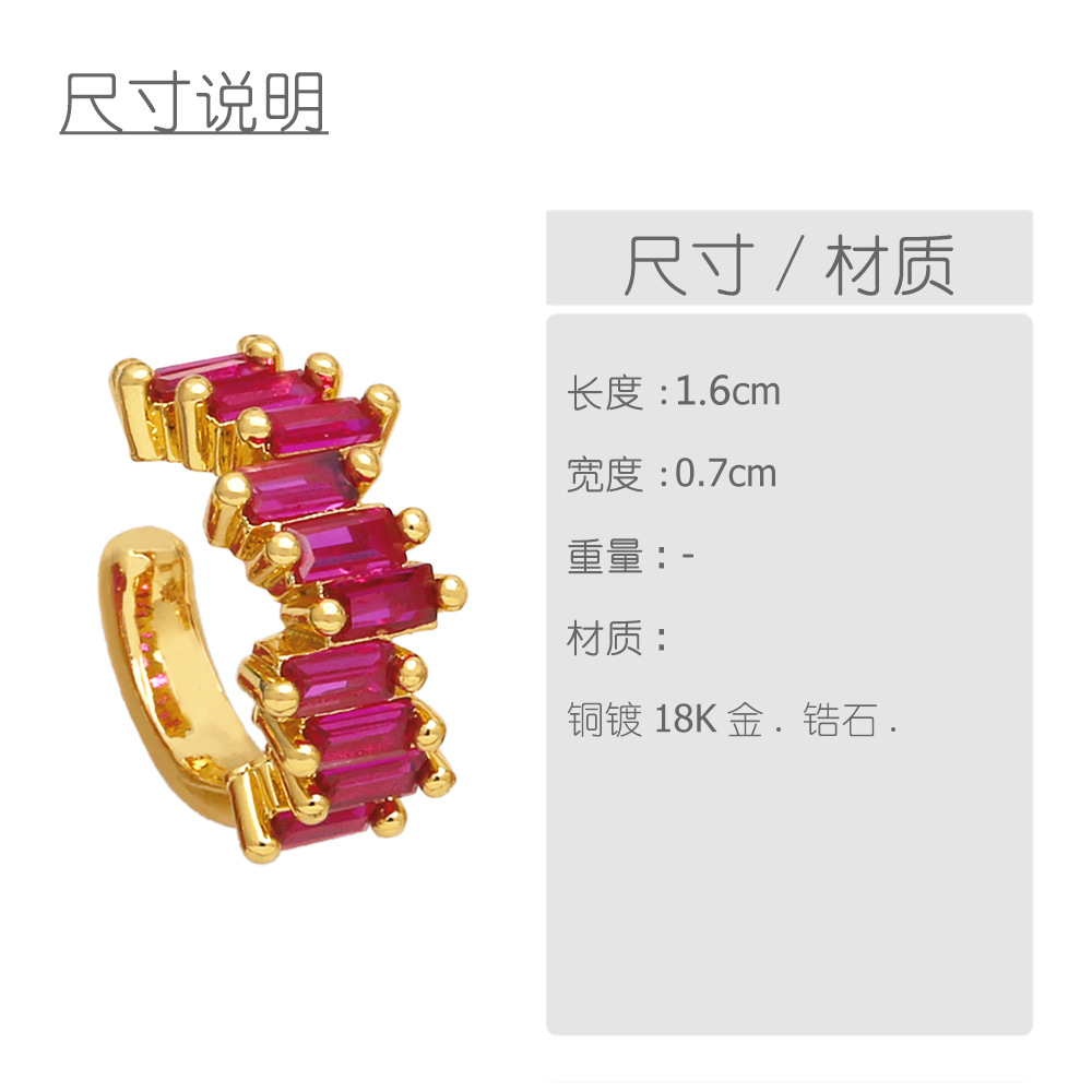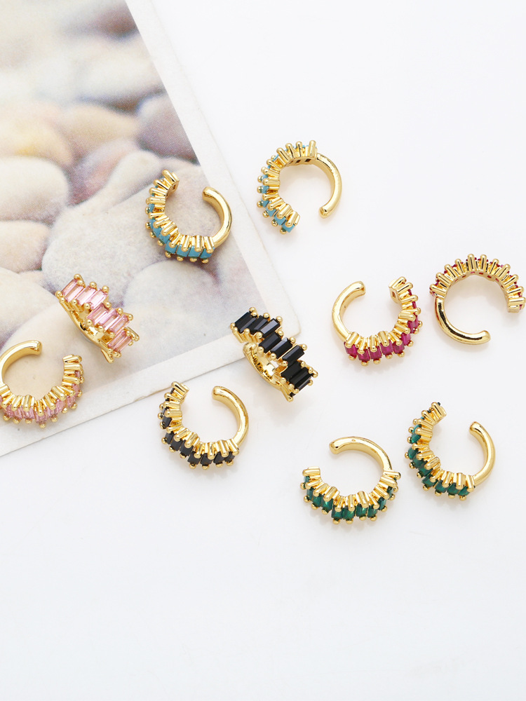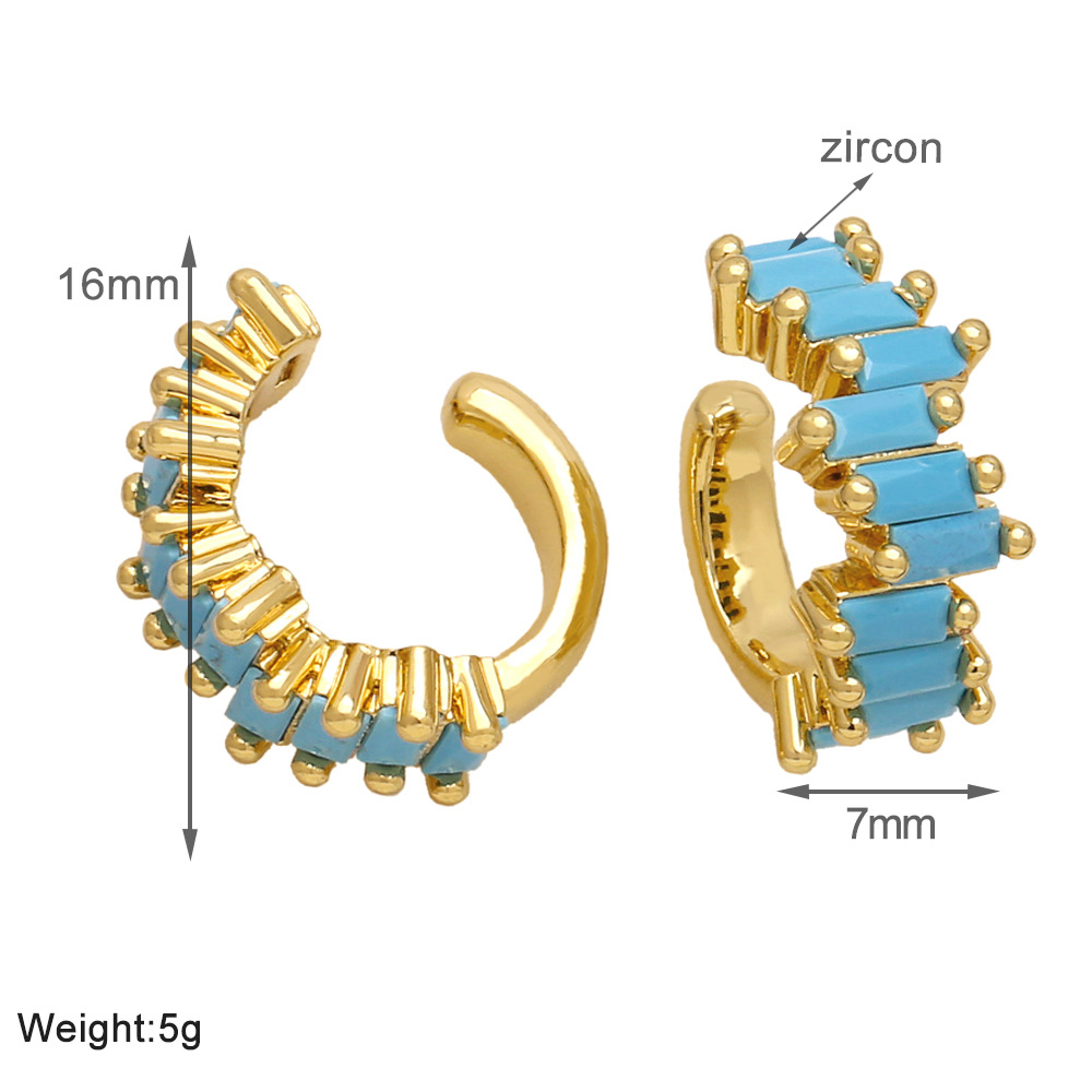 European and American simple fashion color zircon earrings niche design ear clip 18k gold plated earrings eru52