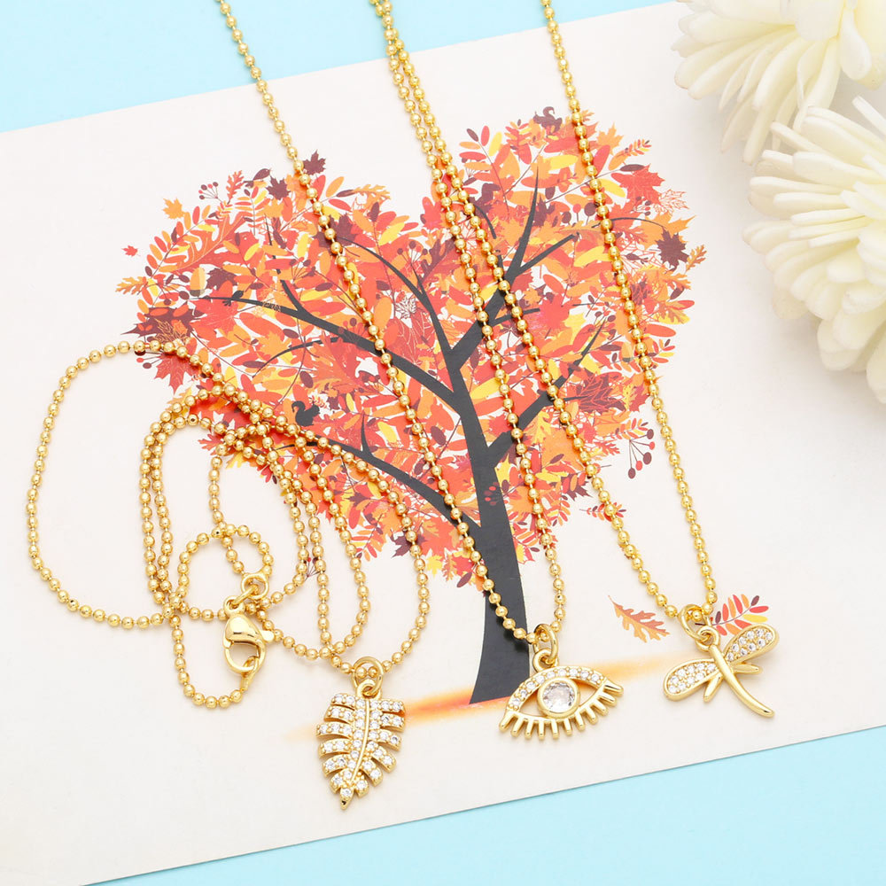 European and American simple fashion devil eye necklace niche design dragonfly leaf pendant clavicle chain nkn59