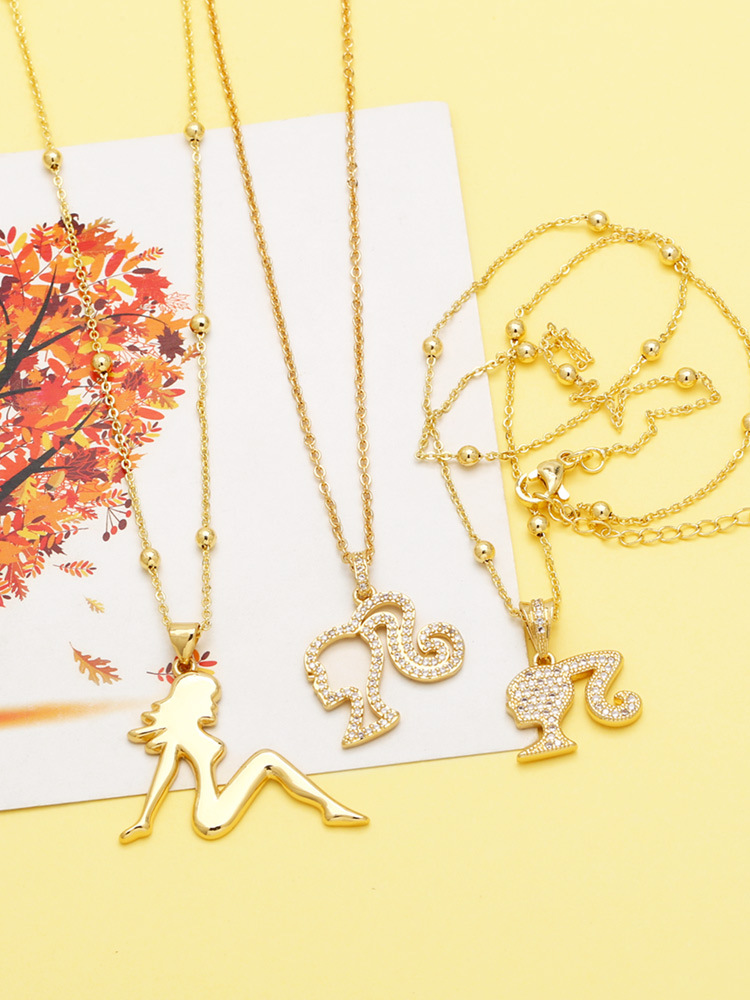 European and American simple fashion girl necklace 18k gold inlaid zircon princess girlfriend pendant clavicle chain nky68