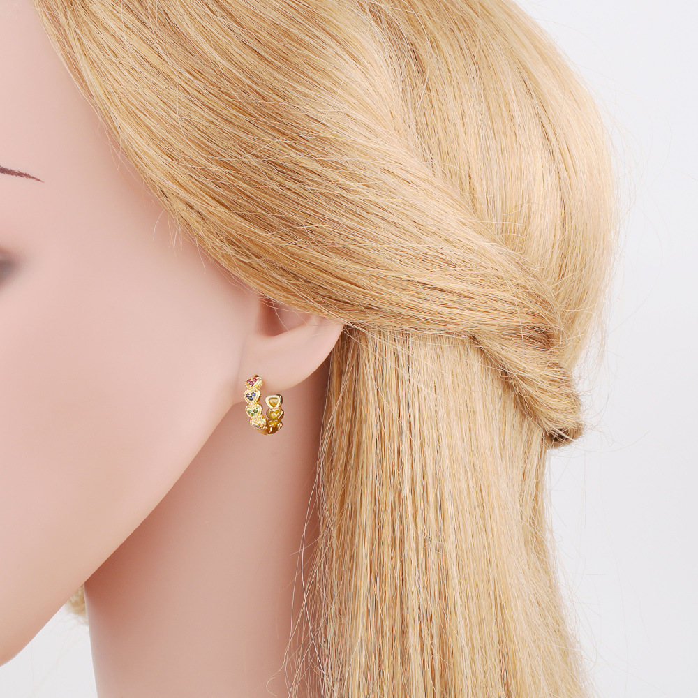 European and American simple fashion love earrings for women niche design colorful inlaid zircon earrings erq04