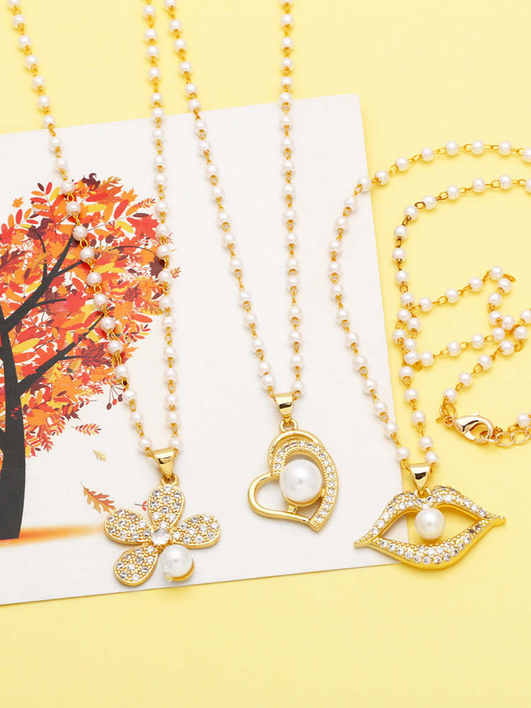 European and American simple fashion pearl lip necklace female niche high-end love flower clavicle chain nkq27