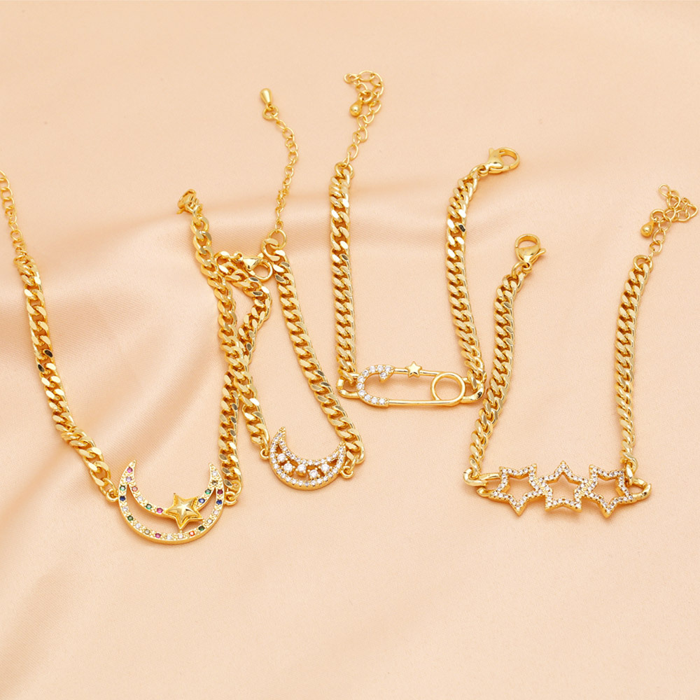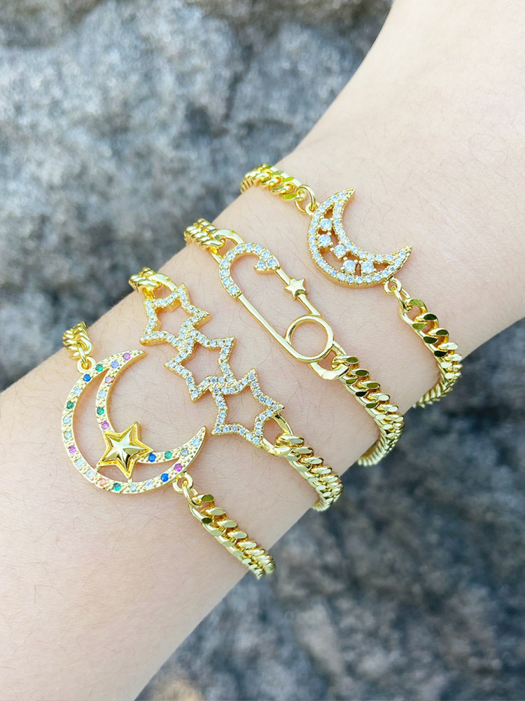 European and American simple fashion star bracelet personality creative inlaid zircon moon hand bracelet jewelry brm29