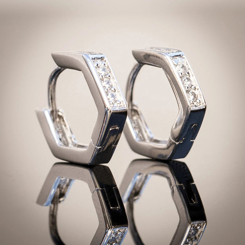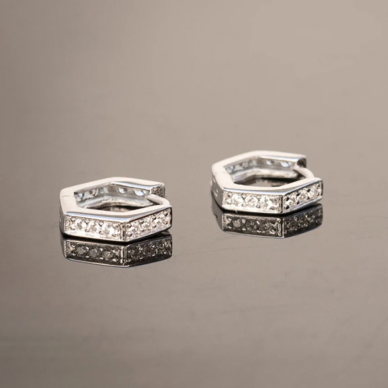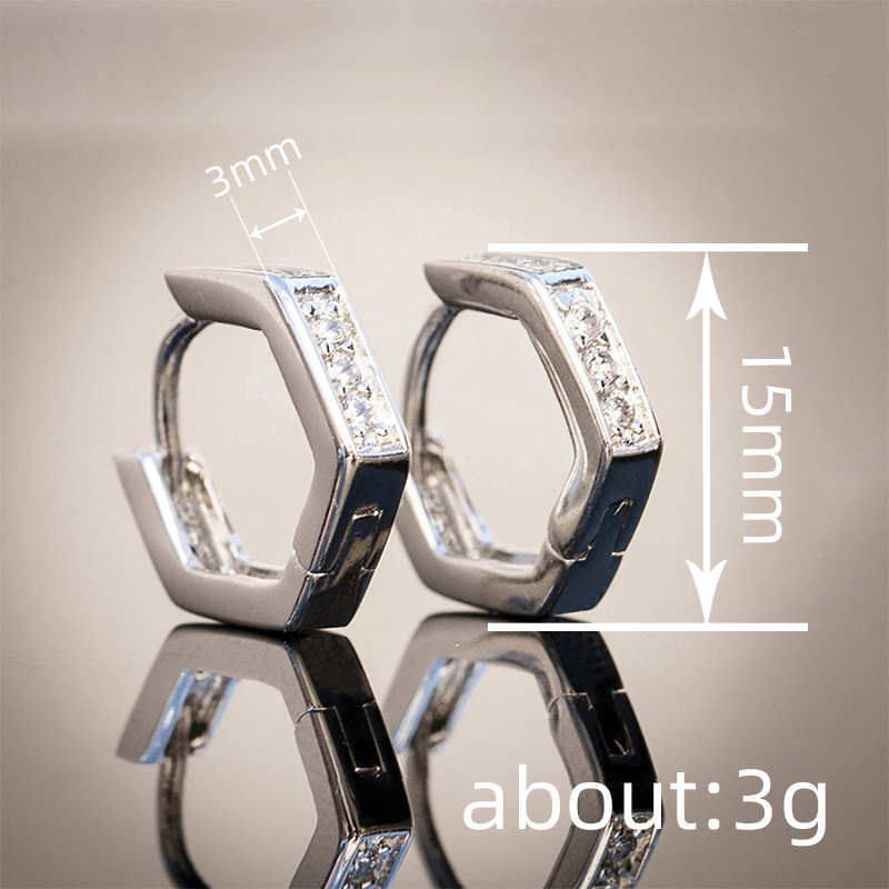 European and American simple hexagonal earrings geometric design zircon ladies jewelry daily matching earrings
